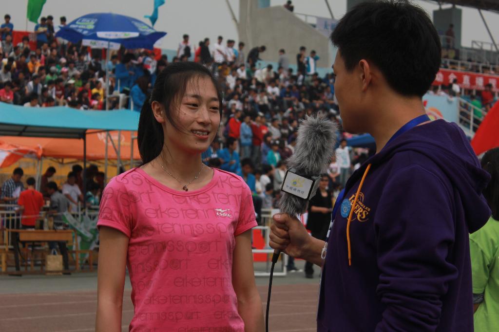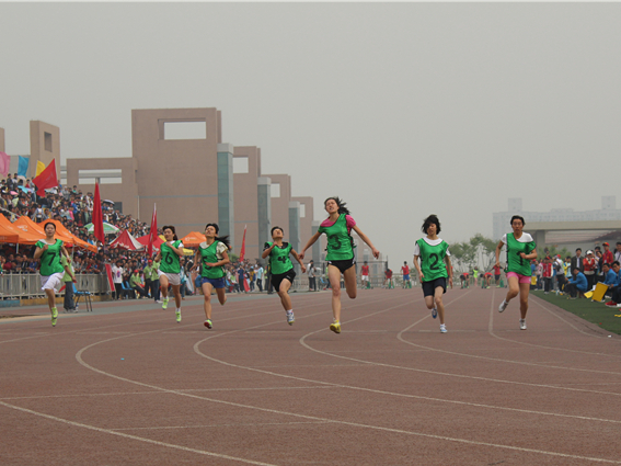 百米短跑一直是备受关注的热点,在19日上午的百米比赛中,机械公司郭一荷同学以惊人的速度箭一般的冲向终点,冲线的那一刻犹为令人激动,在场的观众欢呼雀跃,喝彩声、欢呼声混为一片,都在为完美的速度加油呐喊!郭一荷最终以14’36’’的极限速度取得短跑冠军!