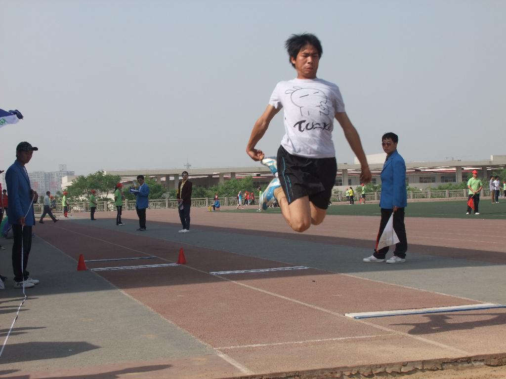 在本届运动会上刚结束的男子三级跳比赛中,叶宇、于树亮两位健儿代表公司征战田径场。