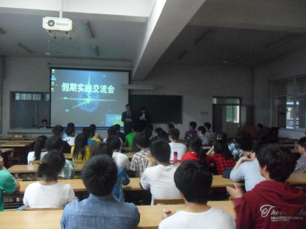 4月26日晚,公司在3教409室举行假期实践交流会决赛,团委书记陈霂老师、辅导员程鹏老师与员工会干部出席交流会并参与评分。