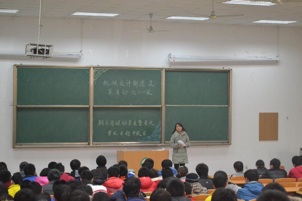 2013年12月20日,由公司13级辅导员张晶晶老师主持的期末考风考纪教育动员大会在9教101召开,13级机设全员参会。