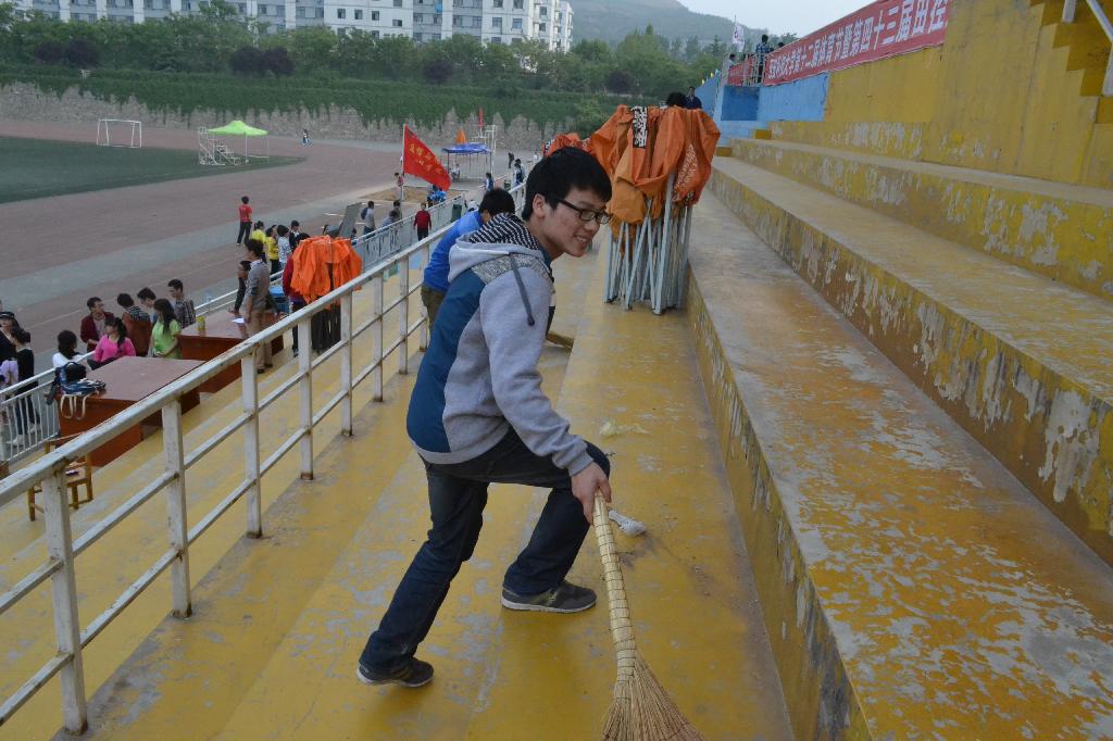 为了增强老员工参加的公益活动的意识,弘扬志愿者精神,培养吃苦耐劳品质,4月24日下午,在公司24日的运动会赛事结束后,公司组织部分员工做了义务劳动。参加义务劳动的同学等观众台上的人员全部撤离后,迅速清理台上台下的垃圾,使田径场在短短的几分钟内变得异常干净。