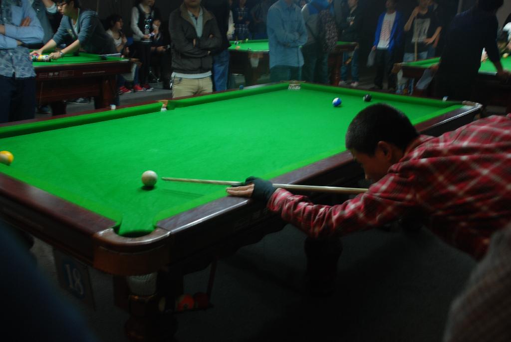 4月24日,公司运动会各类比赛都进行着,台球赛在体育馆内激烈展开。公司代表队稳夺冠军。