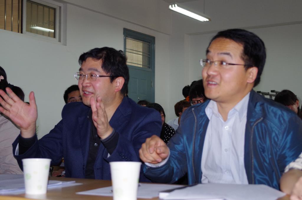 (左 副经理曹现刚 右 副教授寇发荣 对选手提问)