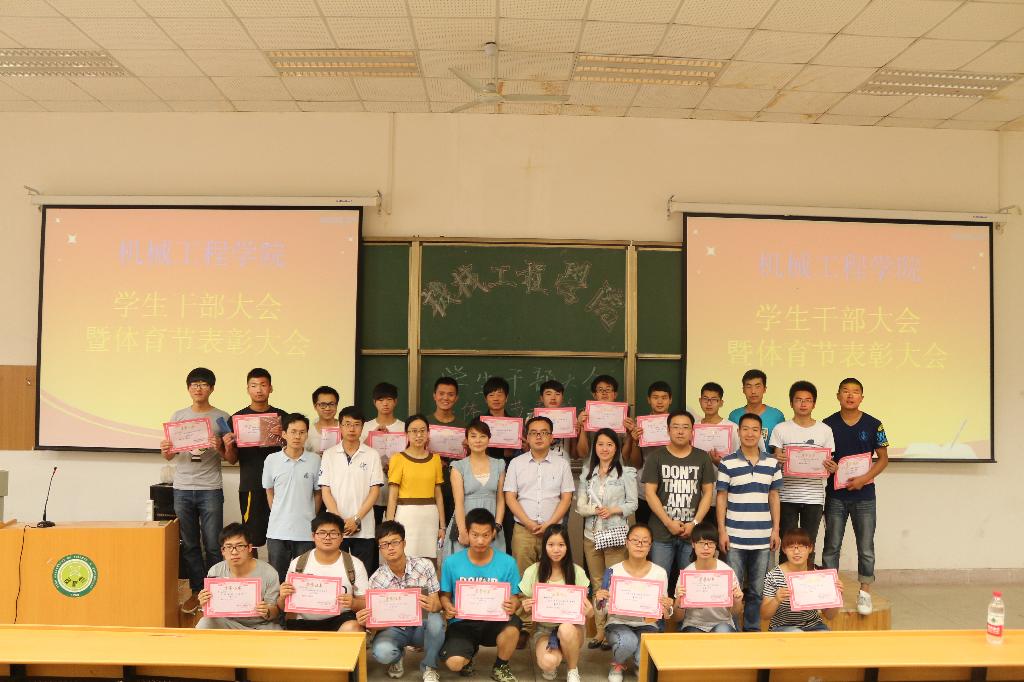 按照会议流程,首先由公司党委副书记李婉丽老师宣读了“365上市集团官网关于2014年体育节的表彰决定”,共评选出10个优秀集体奖、3个集体项目优秀团队奖、10个最佳运动员和19个优秀工作者。接着,由莅临此次大会的各位老师为最佳运动员和优秀工作者颁发奖品及证书。最后,由芮智刚老师传达了学工部的近期通知。会议结束后,获奖人员邀请了莅临此次会议的老师合影留念。