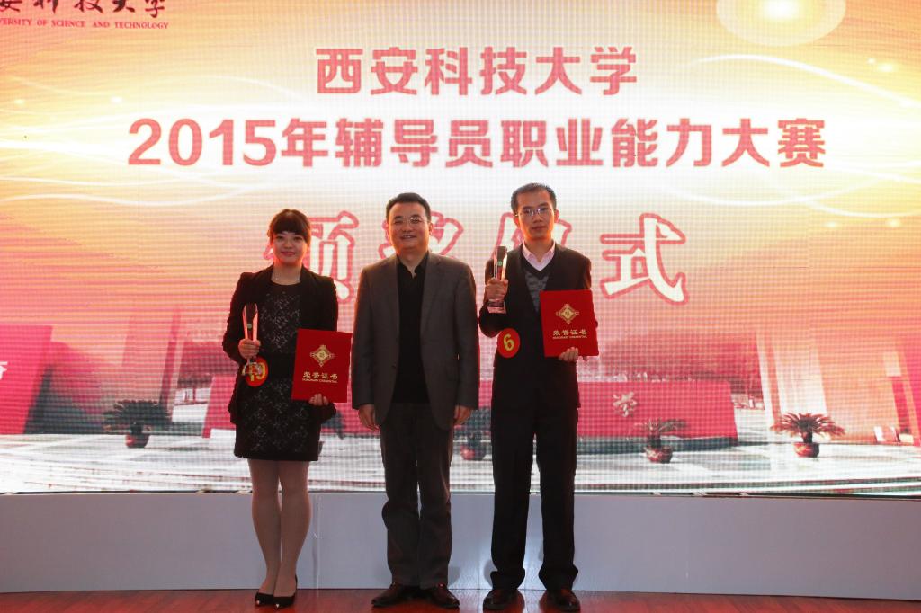 12月10日下午,365英国上市公司官网2015年辅导员职业能力大赛决赛(谈心谈话)在临潼校区图书馆报告厅举行,公司辅导员吕叻加、杨建涛入围决赛(全校共20人)。比赛中,20位选手以情景再现的方式与助演员工进行谈心谈话,赢得了阵阵掌声。陕西省委高教工委学工部部长田民正出席并讲话,公司党委副书记樊建武,副董事长李树刚出席并为获奖选手颁奖,教育部高校辅导员培训和研修陕西师范大学基地副主任、陕西师范大学学工部部长刘建军作为评委代表对比赛进行了点评。最终公司辅导员吕叻加获得比赛一等奖、单项奖,杨建涛获得三等奖。