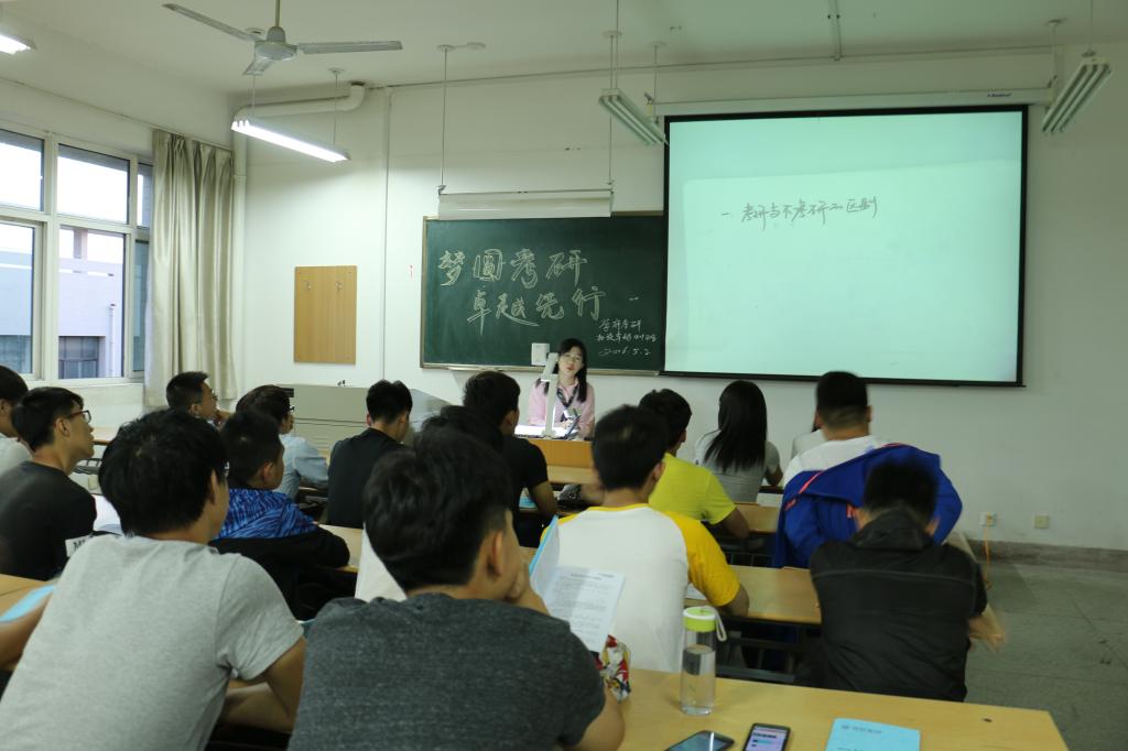 2016年5月3日晚七点半,机设设计制造及其自动化(卓越)1401班在辅导员吕叻加老师安排下邀请学府考研专业老师于十教501教室举办题为“梦圆考研 卓越先行”考研主题讲座。本次讲座由学府考研临潼分校董事长余巍老师主讲,机设卓越1401班全体同学参与了本次讲座。