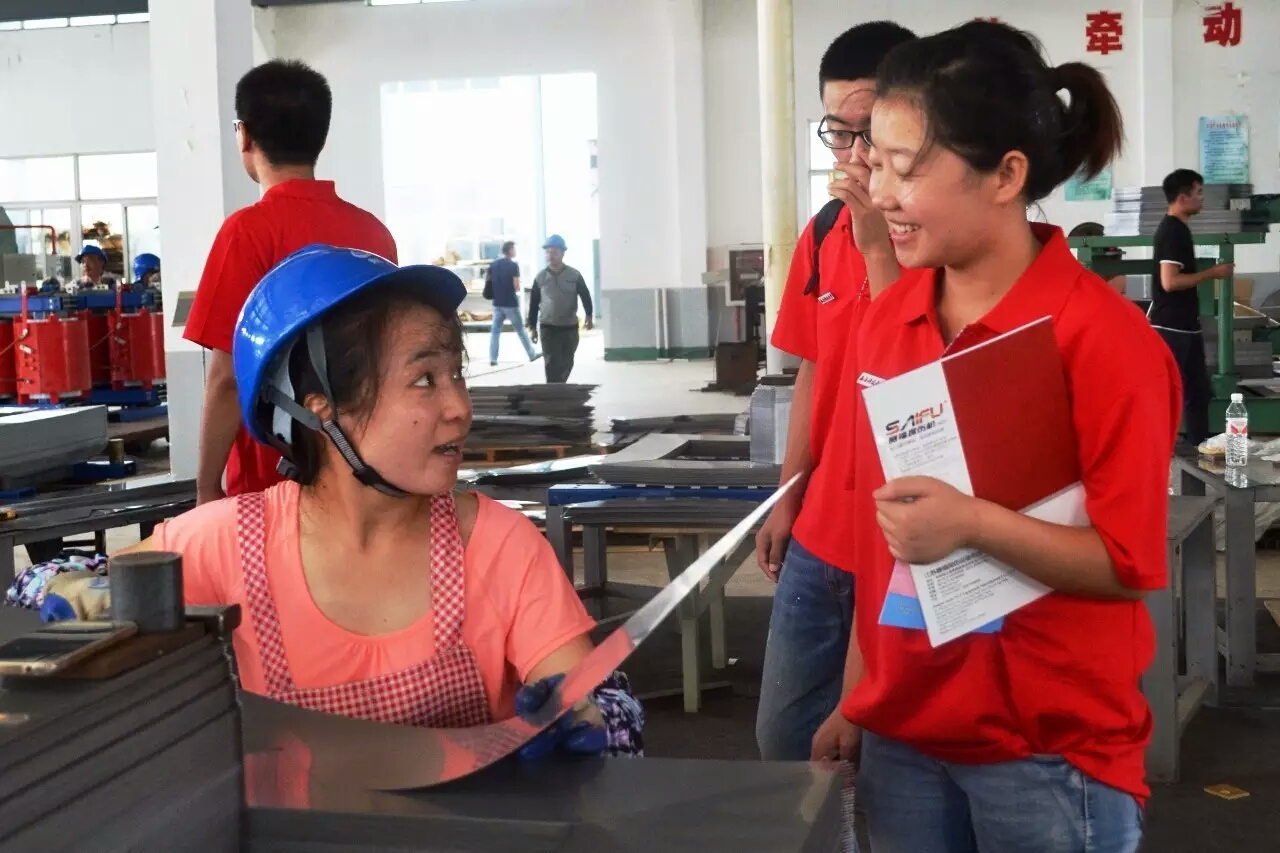 在江苏赛福探伤设备制造有限公司,副总经理高级经济师杨建向实践团成员介绍了公司的发展历史和发展现状。队员们随后参观了公司的厂房车间和研发中心,并与工作人员进行了深入的交流。该公司成立于2003年9月,是一家以生产、研发和销售探伤检测设备的民营科技企业,技术力量雄厚,是江苏省创新型、科技型企业,盐城市高新技术企业。