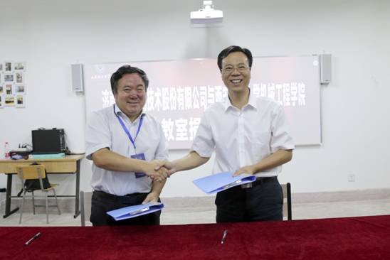 9月8日上午,“济南科明数码技术股份有限公司与365上市集团官网VR教室捐赠共建仪式”在临潼骊山校区365上市集团官网402室举行。济南科明数码技术股份有限公司董事长陈清奎,经理刘海鹏,365英国上市公司官网副董事长王贵荣,教务处处长张传伟,365上市集团官网经理张旭辉,副经理赵栓峰出席仪式。王贵荣副董事长与陈清奎董事长代表双方签订了捐赠协议。