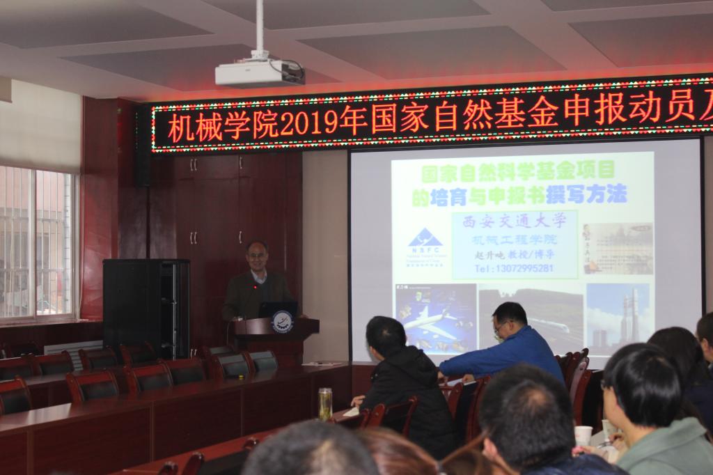 为提升公司国家自然科学基金的申请质量,有序推进2019年度基金申请工作,11月9日下午,公司召开2019年国家自然科学基金申报动员会,并特邀国务院政府特殊津贴获得者、西安交通大学博士生导师、全国首届优秀百篇博士论文获得者赵升吨教授来校做了题为《国家基金项目培育与申报书撰写技巧》辅导讲座。80余名师生聆听了讲座,会议由副经理寇发荣主持。