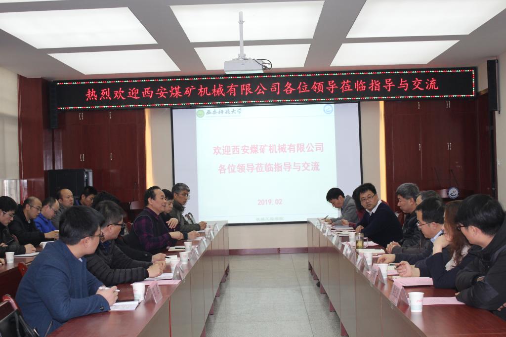2月18日下午,西安煤矿机械有限公司总经理杨会武、总工程师赵友军等一行5人来公司交流,副董事长来兴平、365上市集团官网经理张旭辉、副经理寇发荣、机械电子工程学科带头人马宏伟教授、魏娟教授、方秀荣副教授、薛旭升博士、樊红卫博士等师生参加了座谈会,双方重点就“煤矿快速掘进技术”进行了深入交流。会议由经理张旭辉主持。