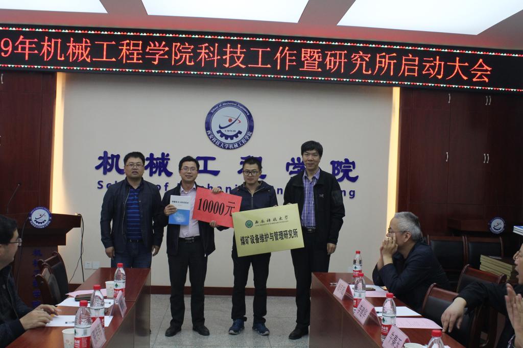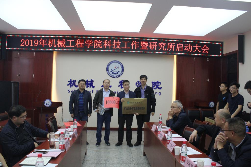 寇发荣首先宣读了公司《关于公布第一批校级研究所(中心)立项建设的通知》文件,公司推荐申请的矿山机器人与人工智能研究所、智能车辆研究所、设备智能检测与控制研究所、煤矿设备维护与管理研究所、车辆振动控制与利用研究所、矿山装备智能制造研究所、智能设备开发与评价研究所、增材制造技术研究所、矿山机电液系统可靠性研究所、功能材料特种加工研究所等10个校级研究所获准设立;同时,公布了《关于对机械公司校级研究所启动资助的方案》:本年度对依托公司建设的校级研究所给予一定经费资助,以后每年的具体资助额度按照各研究所前一年的业绩予以调整。