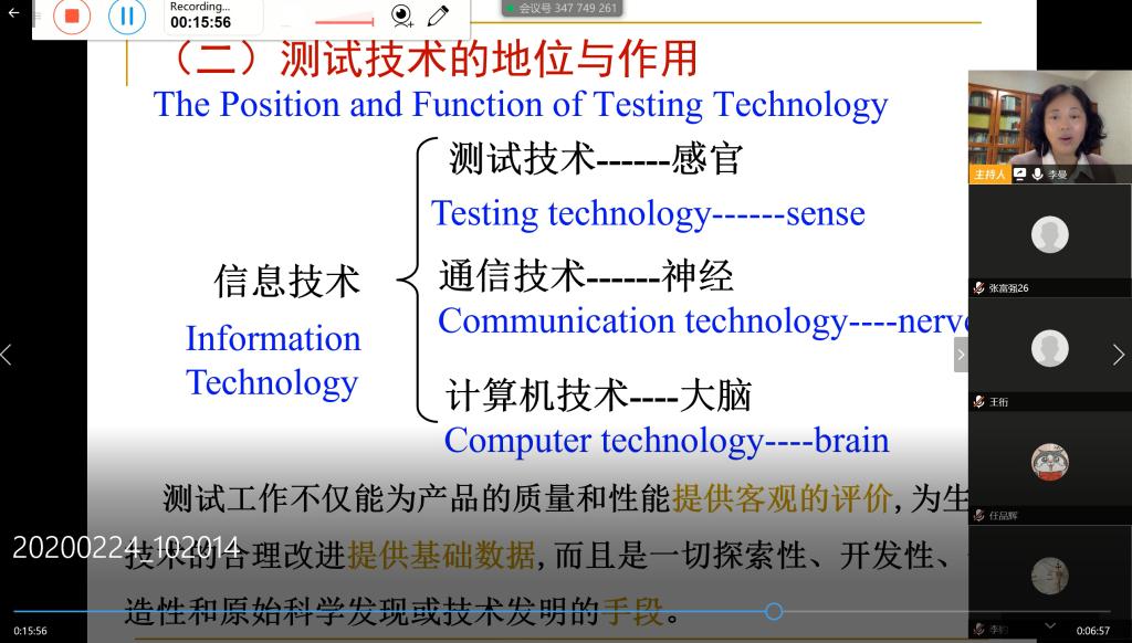 2月24日,本学期第一节由李曼教授讲授的《机械工程测试技术》课程如期而至,全班35名员工按时全员到位,李曼教授在电脑上发起腾讯会议,并从电脑打开教学资源,由腾讯会议共享屏幕,同时录制课程全过程,以备突发状况可以作为补充教学资源使用。