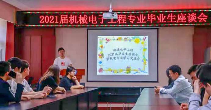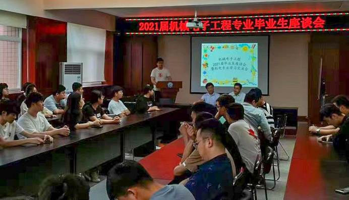 6月16日中午,机械电子系在临潼校区骊山校园机械公司320会议室召开2021届毕业生座谈会。机械公司党委副书记尹弘,副经理赵栓峰、机械电子系主任毛清华出席,机电17级毕业生代表和机电18级、19级、20级员工代表参加了座谈会。座谈会由机械电子系主任毛清华主持。