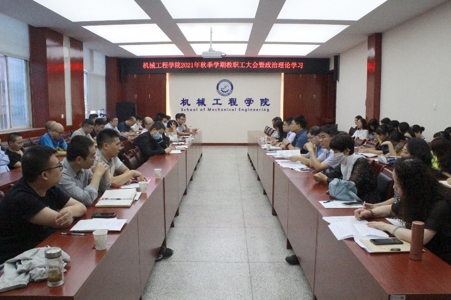 9月8日下午,机械公司在雁塔校区召开2021年秋季学期教职工大会暨政治理论学习会议,公司领导班子成员、全体教职工参加会议。