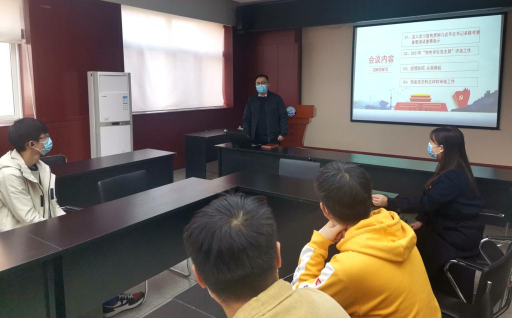 活动中,支部组织委员任昊领学了习近平总书记来陕考察重要讲话重要指示精神有关内容。支部书记王晓康对近期支部建设等相关工作进行了安排。与会师生结合近期工作学习作了交流发言。尹弘在交流中强调,疫情防控,人人有责,当前校园疫情防控严峻形势,希望支部全体党员坚持问题导向、过程导向和目标导向,科学统筹,妥善安排学习生活,充分发挥支部的战斗堡垒作用。一是要从点滴做起,从身边做起,带引同学们切实履行在校生义务,做好日常健康监测,认真执行“每日健康打卡”;二是提醒身边同学正确使用口罩、勤洗手,做好个人卫生防控;带领班级同学加强宿舍卫生整顿,做好宿舍通风、消杀,打造整洁卫生的宿舍生活环境;加强锻炼,增强免疫力;三是坚持“非不必要不外出”,少走动、少聚集,做到“保持一米社交距离”,发现异常及时报备,帮助身边同学切实提高疫情防控警觉,为确保公司公司产品秩序正常做出贡献。