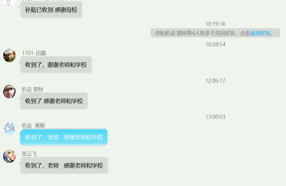 以人为本,扎实做好服务保障。一是全体学工干部积极响应公司“横到边、纵到底”员工教育管理要求,全体学工干部“下沉”员工宿舍,深入员工,指导员工开展宿舍学风建设和宿舍文化建设,帮助员工提高自我管理的能力,营造健康积极有序的宿舍文化生活氛围。二是指导员工做好科学防护,分批次为两校区研究生、本科生发放口罩、洗手液等防控物资,累计发放防疫物资3万余元,防疫物资发放覆盖全体员工。三是及时温暖关心生活存在困难的员工。得知公司徐彬等17级延期员工因参加全国四级英语考试,杨扬等2017级毕业生参加研究生考试,受疫情影响滞留公司附近或周边,生活存在一定困难。公司立即安排摸排,“一对一”联系掌握员工生活情况,建立信息台账并及时传达了公司的问候。1月2日上午10时,员工个人银行卡收到公司为其发放的临时困难补助,合计4000元,相关同学纷纷发来信息表达“感谢公司、感谢母校”的惊喜心情。
