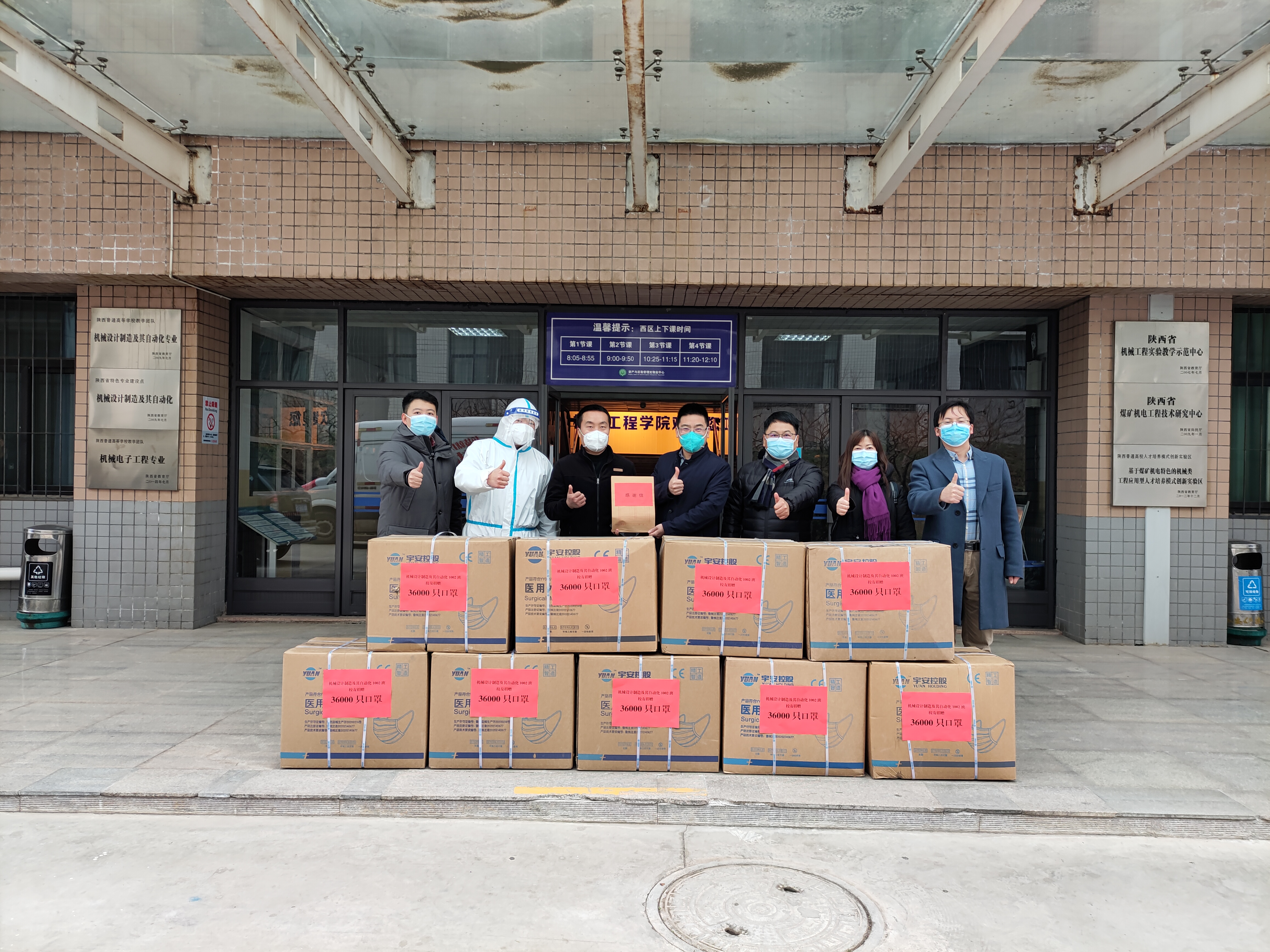 机械设计制造及其自动化1002班自疫情以来通过各种方式积极联系机械公司以表达公司师生的关心、牵挂与问候。1月6日,班长孙永成发起号召后,全班同学积极响应,纷纷向公司捐赠抗疫物资,于1月7日下午送达骊山校园。经理张旭辉向机械员工表达了感谢。机械设计制造及其自动化2010级2班班主任张传伟老师表示,在公司抗击新冠肺炎疫情的关键时刻,同学们心系母校,慷慨解囊,筹集资金为“第二故乡”捐赠口罩的善行义举让母校师生倍感温暖、备受鼓舞、倍添动力,更加坚定了战胜疫情的信心!