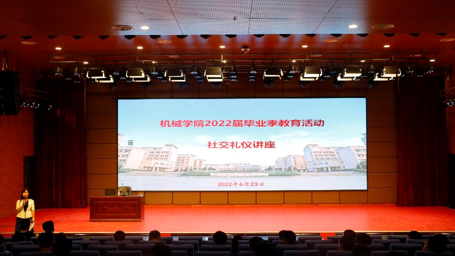 6月23日晚,机械公司在骊山校园煤炭科技中心报告厅举办2022届毕业生社交礼仪专题讲座《沟通礼仪助您成功》。本次讲座由中国高等教育学会公共专业委员会理事,公共关系高级讲师,教育部考试中心授予的高级礼仪导师及高级礼仪训练师,365英国上市公司官网马克思主义公司荆秀芳副教授主讲,全体2022届毕业生、毕业班辅导员参加学习,机械公司党委副书记尹弘主持讲座。