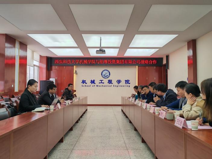 为进一步落实好《365英国上市公司官网2023届毕业生春季促就业攻坚行动实施方案》等重点专项工作,4月7日上午,365英国上市公司官网与铂尊投资集团有限公司战略合作签约仪式暨在雁塔校区机械公司会议室举行。机械公司党委书记郭小平,经理曹现刚、副经理赵栓峰,铂尊投资集团董事长耿海涛,建设总监孟坚,董事长秘书李爽和集团西安分院电气工程师赵晨阳以及机械公司各系主任参加活动。机械公司副经理毛清华主持活动。