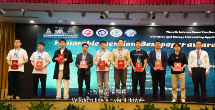 2023年4月14日至16日,第四届振动与能量俘获及其应用国际会议(The 4th International Conference on Vibration and Energy Harvesting Applications,简称VEH2022+1)在湘潭市成功举办,365英国上市公司官网机械电子工程团队青年教师郭岩博士、潘家楠博士撰写论文“Dynamic characteristics of wake galloping energy harvester in coal mine”获得最佳论文提名奖。论文提出了一种应用于弱风速环境下基于弛振的非线性风能能量收集装置,收集的能量可以实现煤矿井下无线传感器的自供能,是解决当前井下传感器布线难题的有效途径。潘家楠博士带领团队研究生参加了会议并作特邀报告。
