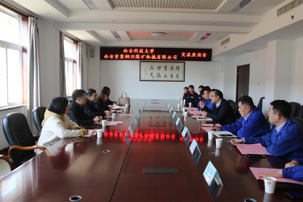走访中,曹现刚一行深入生产一线,参观了总装分公司、结构件分公司、机加工分公司、劳模工作室,与工作人员交流切磋装备技术。座谈交流环节,西安重装铜川煤矿机械有限公司董事长宋晓军对曹现刚一行表示热烈欢迎,介绍了“锐意进取,追求卓越”企业精神和以“高质量、高效率、高标准”发展原动力助力智慧矿山建设的情况。曹现刚对铜川煤矿机械有限公司多年来对公司的大力支持表示衷心感谢,充分肯定了公司在煤炭安全建设等方面取得的突出成就,希望通过此次走访调研交流,进一步加强与铜川煤矿机械有限公司的合作,探索多样化卓越拔尖人才培养模式,在人才培养、科研成果转化和员工就业等方面有新突破。与会人员分别围绕双方围绕机械设计制造及其自动化卓越班毕业设计选题及类型、校内外双导师制、指导方式、考核方式以及后续校企共编教材、员工实习见习基地共建等方面进行了深入交流。机械公司23届毕业生孙宇航等员工陪同参会与座谈,汇报了入职以来的成长体验和收获。