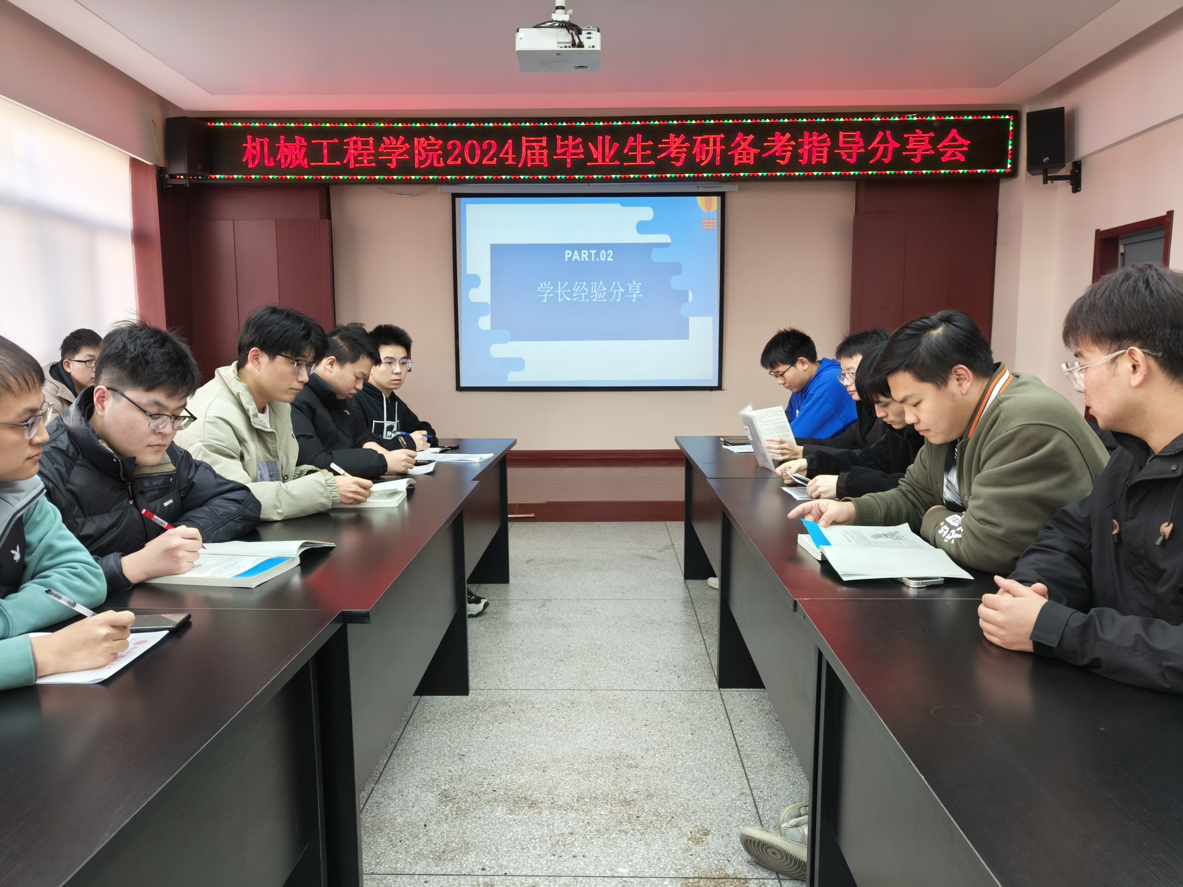 交流会上,田嘉玮,马维,张润鹏,郭佳豪,刘航5名分别从考研准备、复习资料搜集、学习规划、复习方法、心态调整、冲刺备战等方面分享了考研历程和心得,并结合自身备考、笔试、面试等经历讲解了考研过程中存在的困难与破解方法。备考员工仔细听取了学长的报告,吸取学长优秀的考研经验,收获满满。互动交流环节,5名研究生学长根据经验,细致耐心的为同学们答疑解惑,并鼓励备考同学们坚持最后冲刺阶段,认真做好重难点的复习,放平心态积极备考。