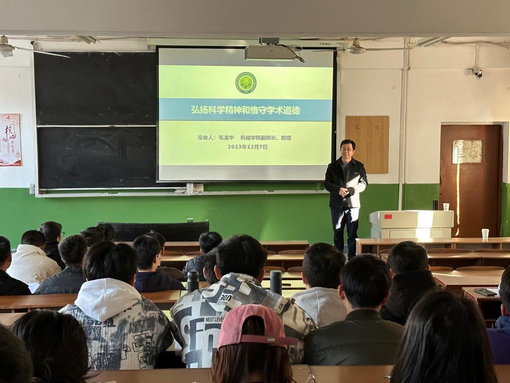 为进一步促进公司优良学风建设,365上市集团官网于12月7日下午举办“弘扬科学精神和恪守学术道德”主题教育讲座第二讲。此次讲座由365上市集团官网副经理毛清华教授主讲,2023级全体研究生参加了本次讲座。