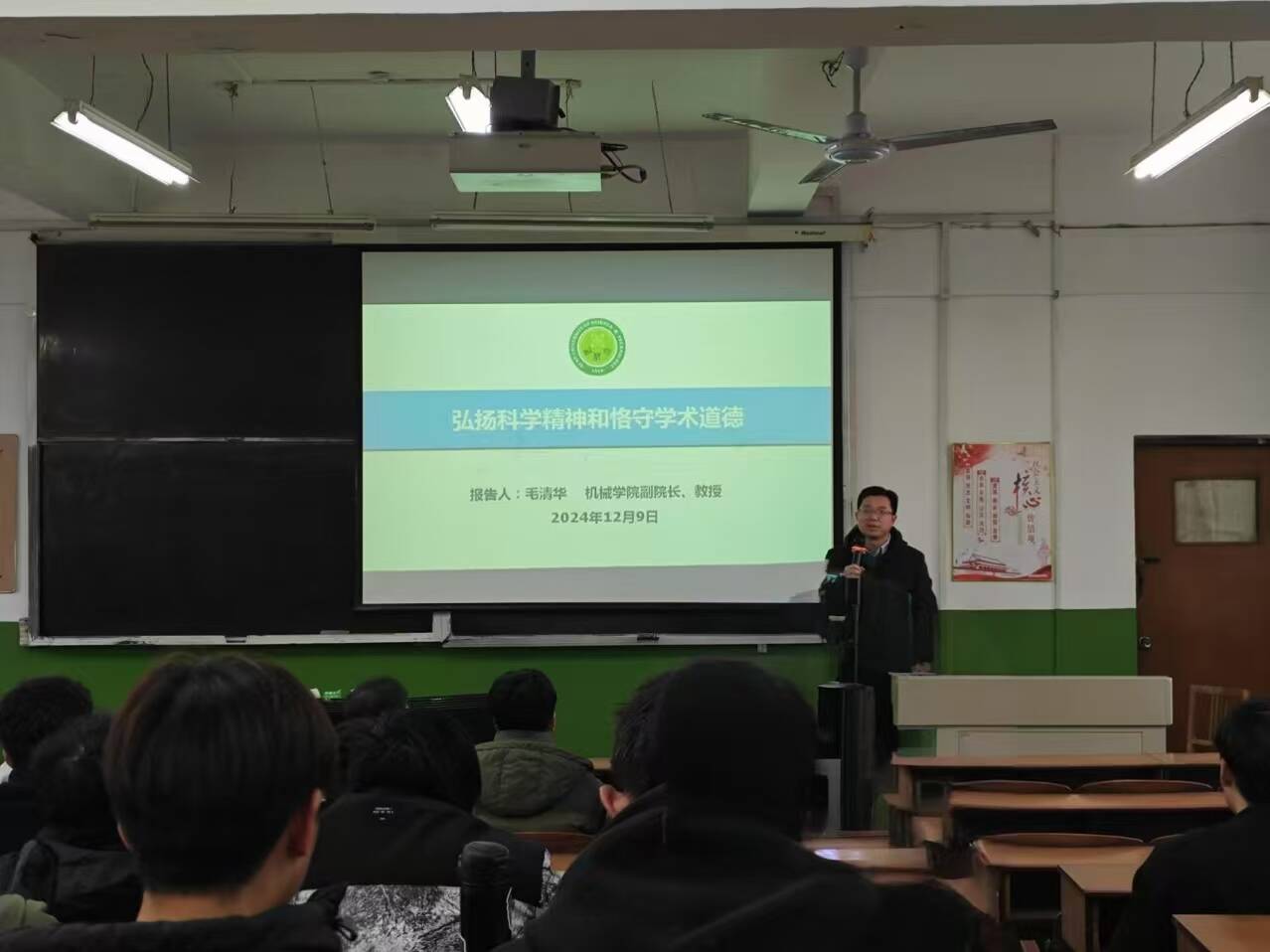 为进一步强化研究生科学道德与学风建设,为2024级博硕士新生铺设坚实的科研学习基石,同时深化对学术道德规范的认知,共同营造更为纯粹与浓厚的学术氛围,365上市集团官网于12月9日下午4点,在雁塔校区主楼401教室,举办“科学精神与学术道德”主题报告会第二讲。报告会由机械公司副经理毛清华教授主讲,全体2024级研究生的参加了报告会。
