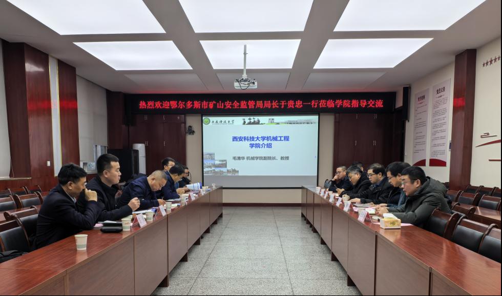 于贵忠局长介绍了鄂尔多斯市煤炭产量、煤炭企业的基本情况,表示此次来访主要调研公司煤矿智能化方面的先进技术,期望公司将先进科研成果在鄂尔多斯市煤炭企业转化落地,促进鄂尔多斯市煤矿智能化发展。