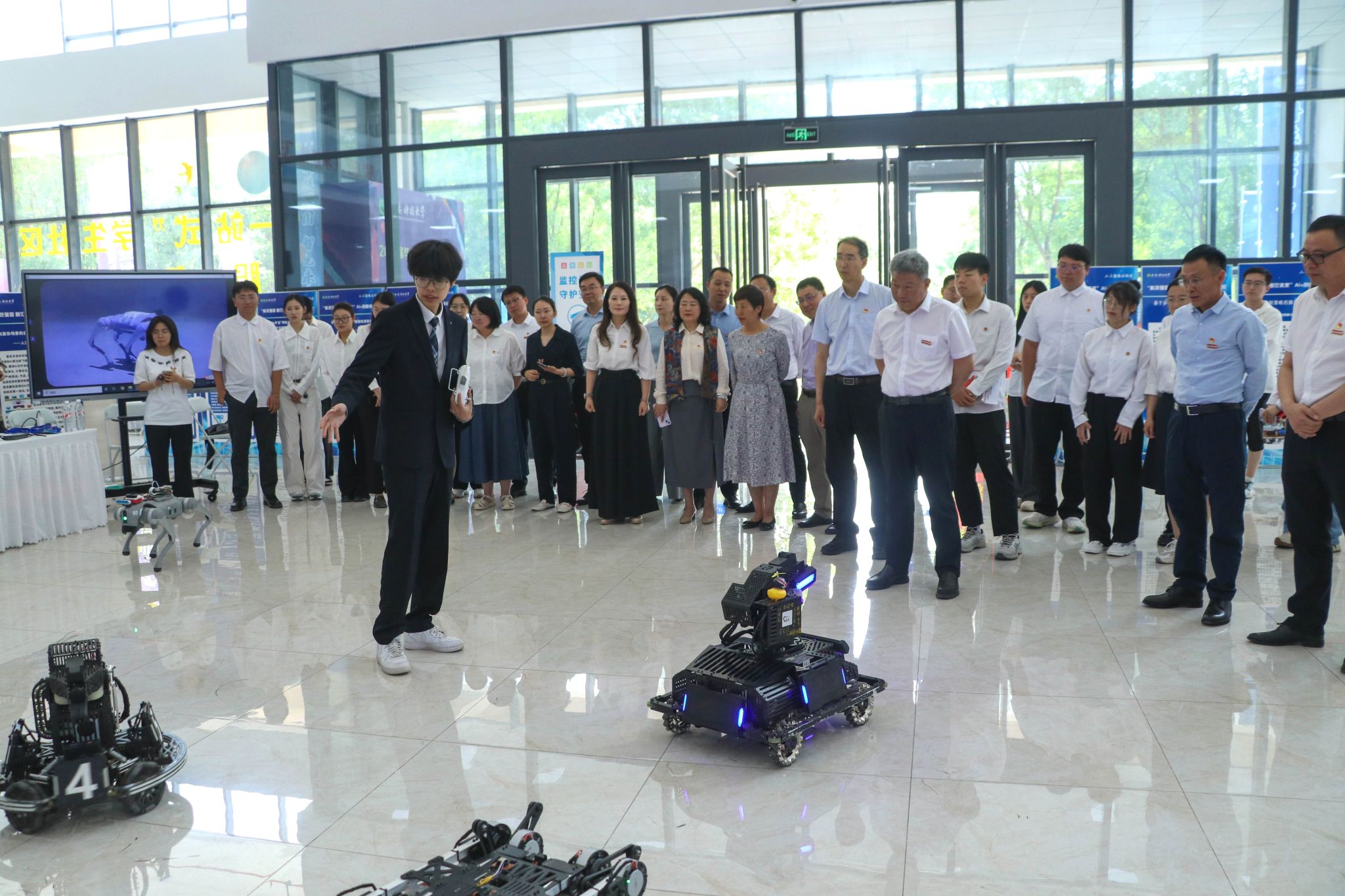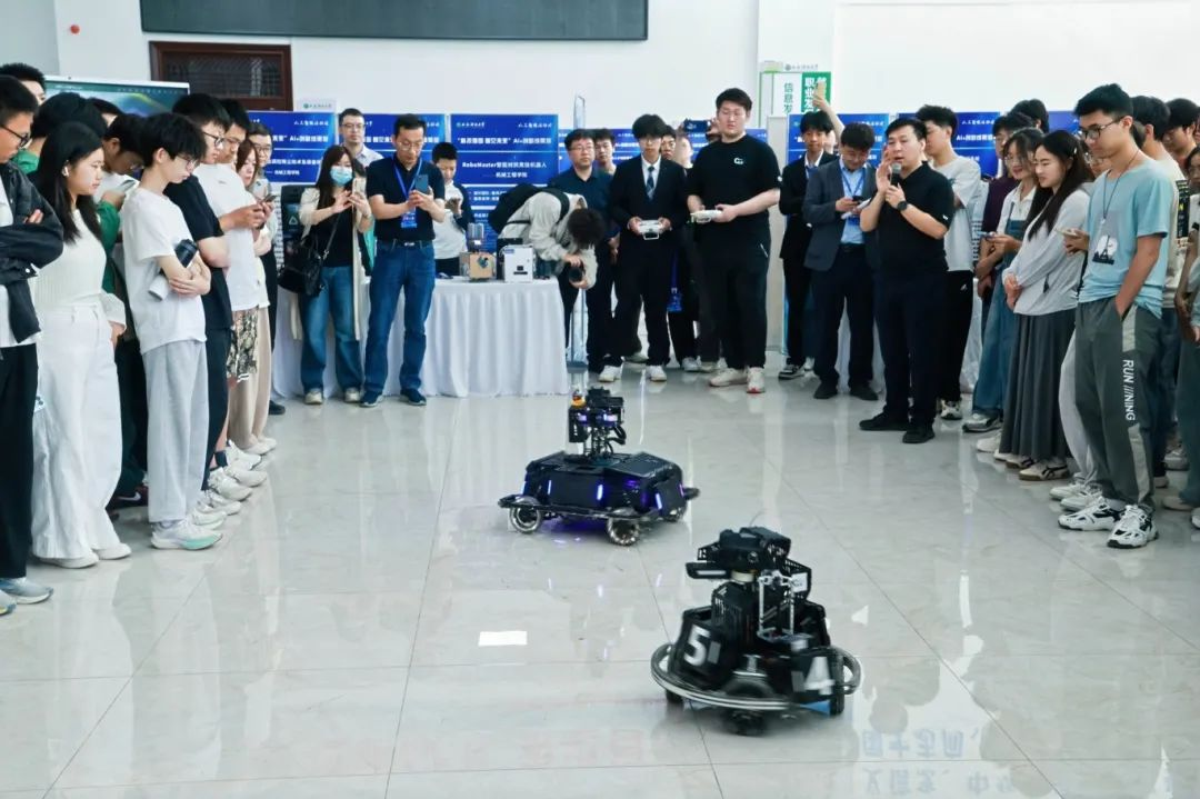5月1日,公司机械公司RM竞技机器人团队“秦风战队”携自主研发的步兵机器人、英雄机器人等创新成果,亮相公司人工智能主题活动,成为现场瞩目的焦点。在机械公司经理曹现刚教授、副经理钟斌教授与青年骨干教师的协同组织下,作为公司智能机电系统创新设计众创空间的代表性项目,该团队以学科交叉融合、实战化研发和“以赛促创”的培养模式,生动展现了公司在人工智能与高端装备领域的前沿探索与育人成果。