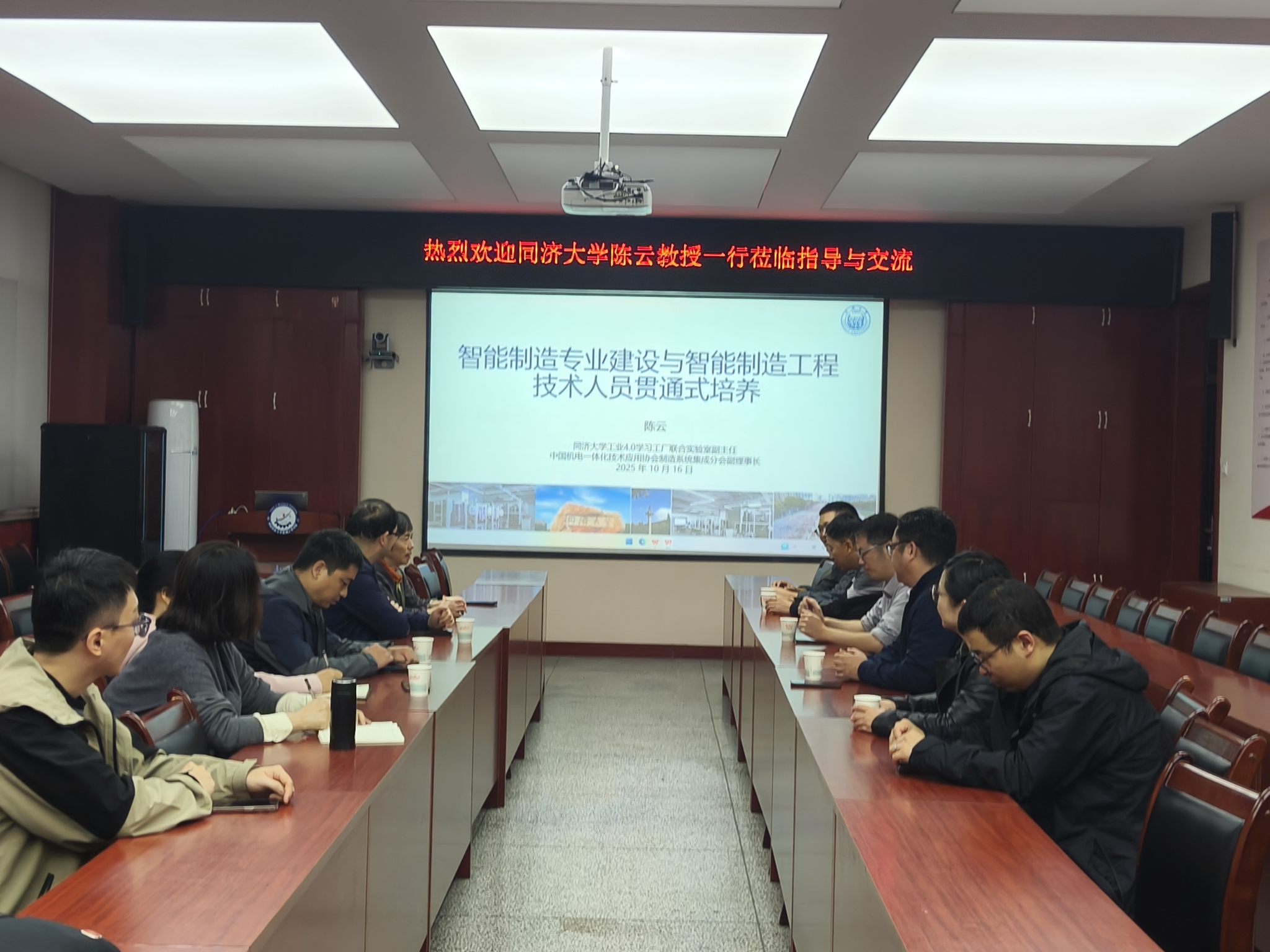 曹现刚经理对陈云教授一行的到来表示热烈欢迎,并介绍了公司智能制造专业的建设进展及当前正在推进的工程教育认证准备工作。他表示,希望以此次交流为契机,借鉴同济大学在智能制造人才培养方面的成功经验,进一步优化公司专业结构,强化校企协同,提升员工的工程实践与创新能力。