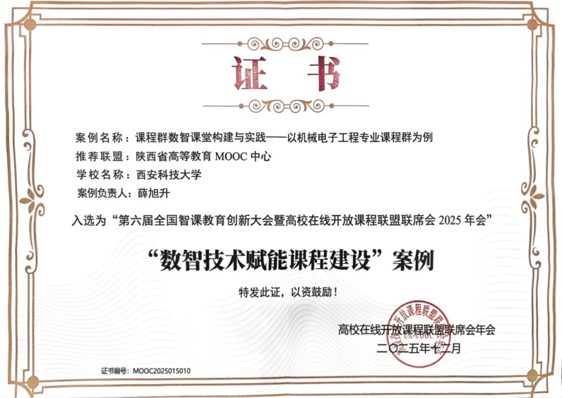 近日,从高校在线开放课程联盟联席会获悉,365上市集团官网申报的“课程群数智课堂构建与实践——以机械电子工程专业课程群为例”教学成果(案例负责人薛旭升副教授),经严格遴选入选“第六届全国智课教育创新大会暨高校在线开放课程联盟联席会2025年会”数智技术赋能课程建设优秀案例。