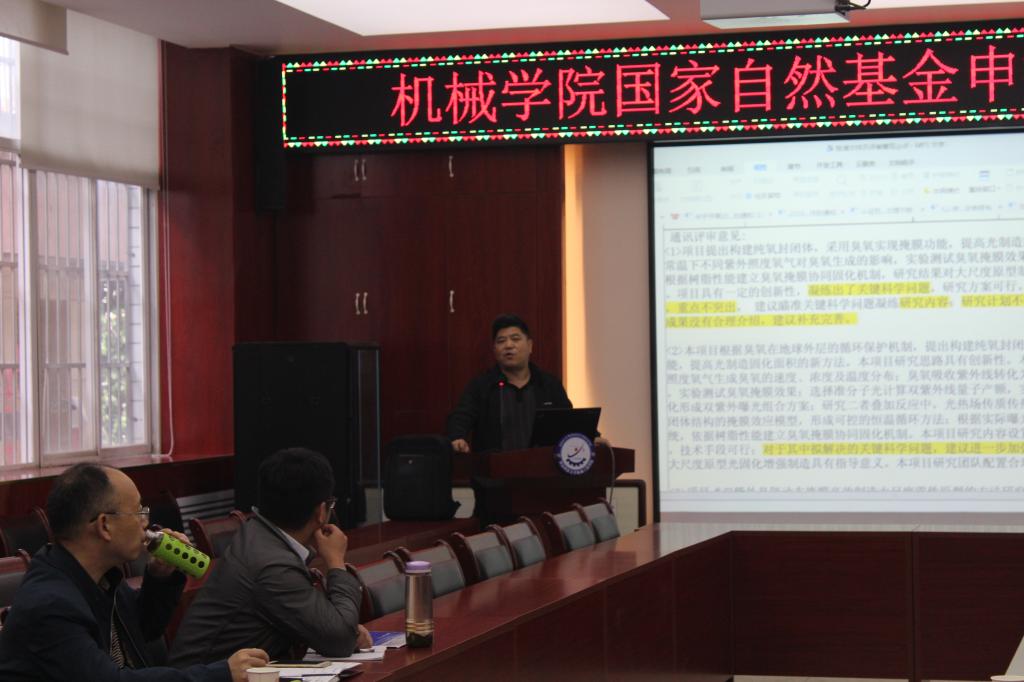 寇发荣首先介绍了机械公司历年来公司国家基金获批情况:2018年公司获批国家自然科学基金7项,其中重点基金1项,面上项目3项,国际联合基金1项,青年基金2项;与国内及省内同类院校进行了对比分析,鼓励老师们要提早动手、积累高水平成果、提高国家基金申请书撰写水平。宗学文、龚晓燕、杨满芝、高中堂等4位获得过国家自然科学基金的教师,分享了国家基金申报的成功经验。与会的每位教师分别结合基金评审反馈意见和存在的问题作了发言,并与大家进行了深入而热烈的交流探讨。