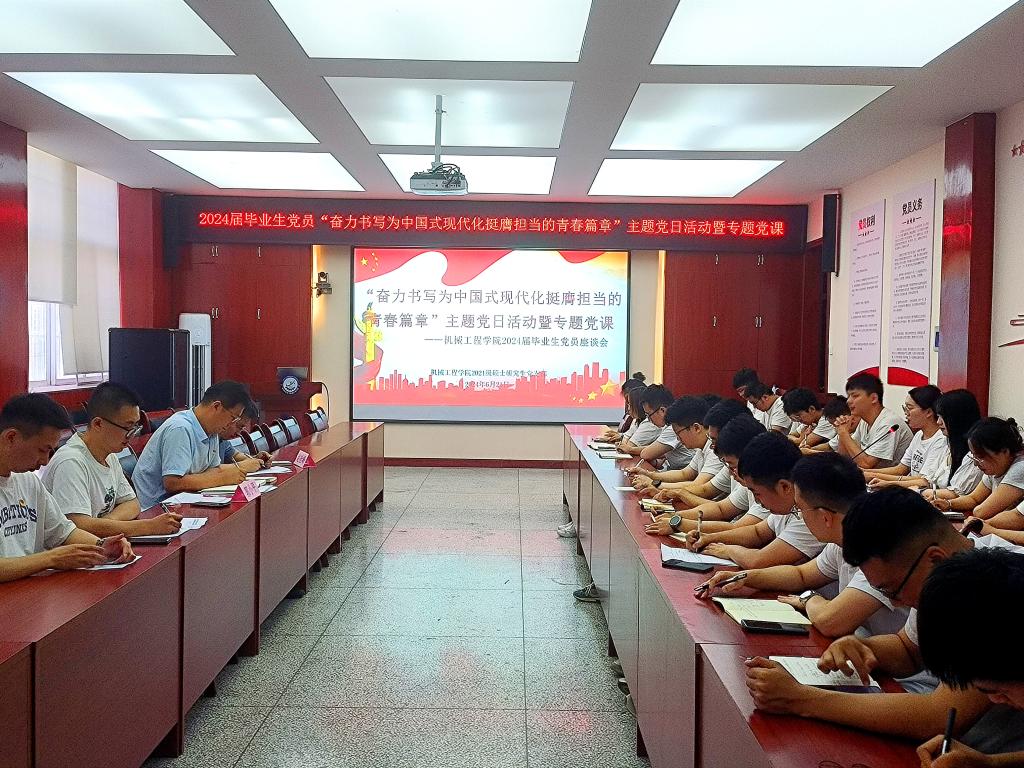 为深入学习贯彻党的二十大精神和习近平新时代中国特色社会主义思想,扎实推进党纪学习教育,进一步强化公司毕业生党员的党性修养,引导员工党员牢记身份、发挥先锋模范作用6月21日下午,365上市集团官网在雁塔校区机械楼210会议室召开“奋力书写为中国式现代化挺膺担当的青春篇章”2024届毕业生党员主题党日活动暨党纪学习教育专题党课。公司党委书记郭小平、副经理赵栓峰以及2024届硕、博士毕业生党员参加。支部书记张富强主持活动