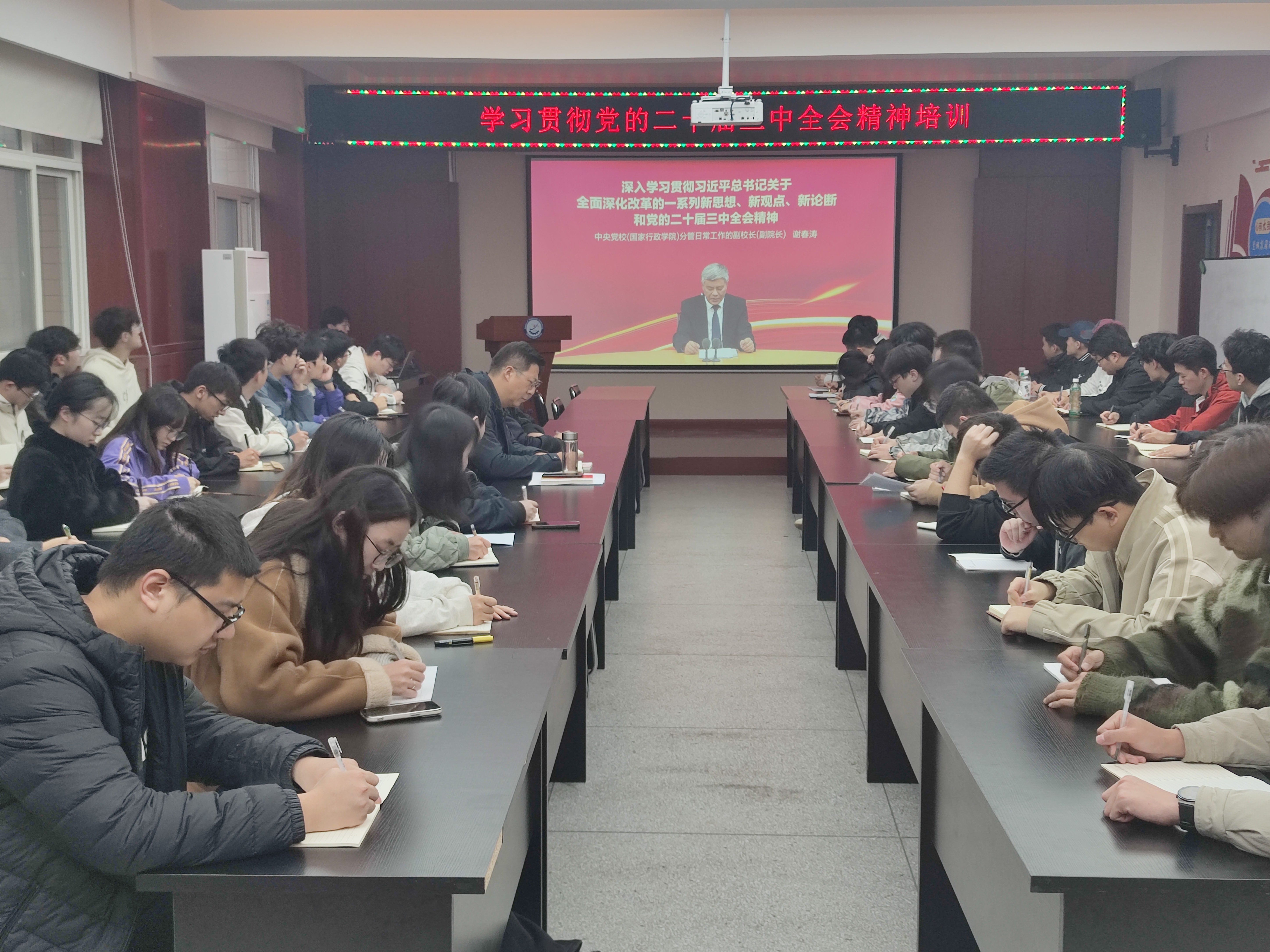 为深入学习贯彻党的二十届三中全会精神,认真贯彻习近平总书记关于党的建设的重要思想,践行新时代党的建设总要求,11月15日下午,365上市集团官网在骊山校园10号教学楼320召开学习贯彻党的二十届三中全会精神培训会议。公司党委书记郭小平、辅导员及全体本科生党员参加。会议由郭小平主持。