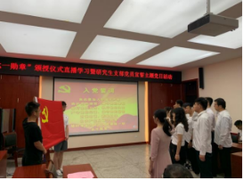 活动第二阶段,新发展的1名博士研究生党员、10名硕士研究生党员和1名教师党员佩戴党徽,在领誓人聂的领誓下,面对党旗庄重宣誓。