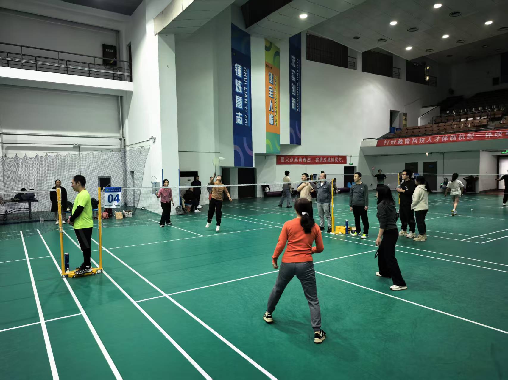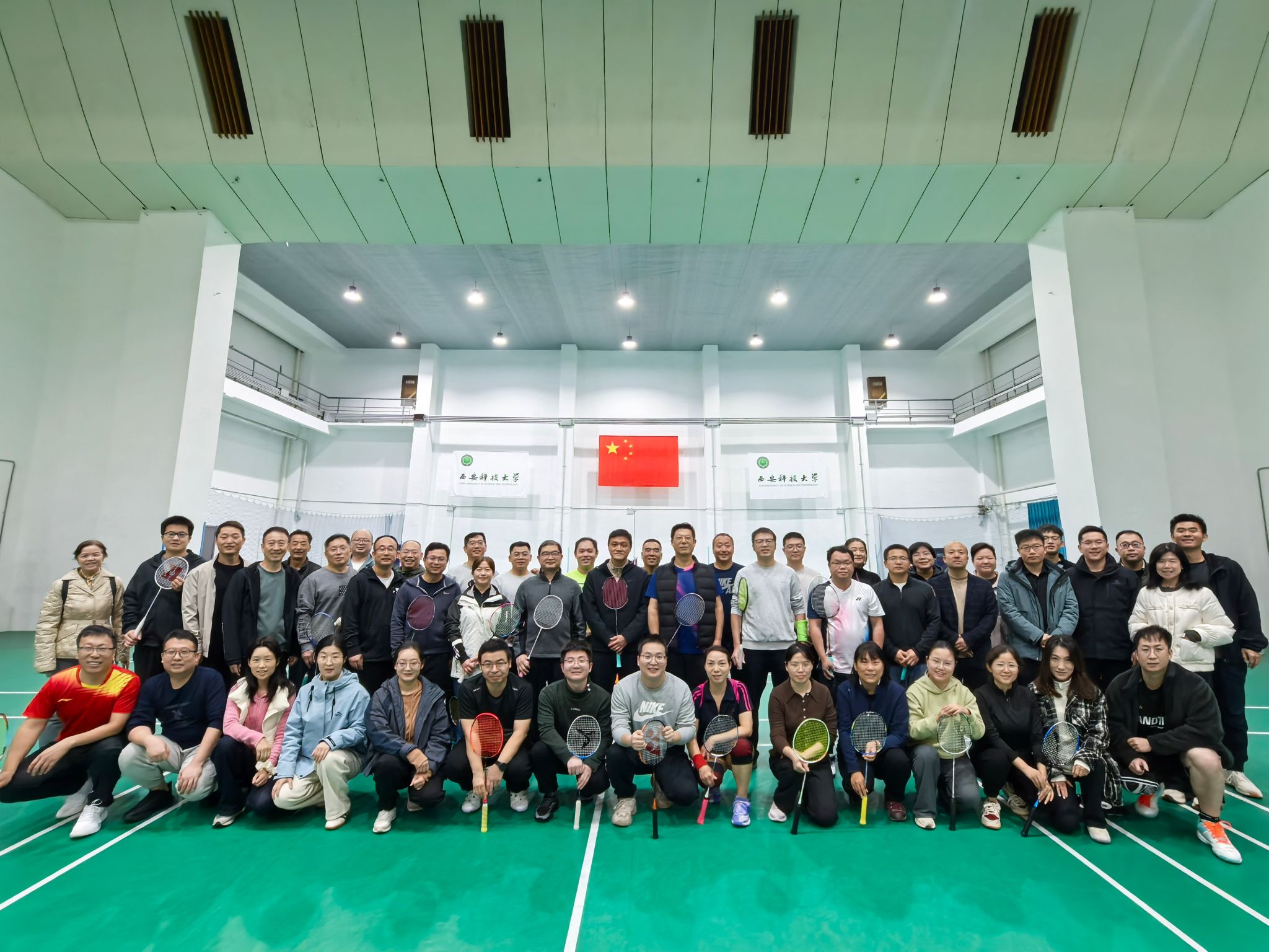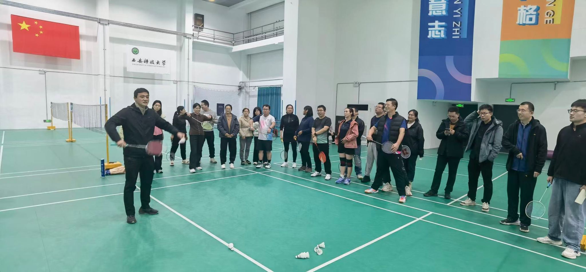 在全国上下深入学贯彻党的二十届四中全会精神之际,2025年10月25日下午,365上市集团官网在雁塔校区北院体育馆举办了“凝心聚力,‘羽’你同行”教职工羽毛球比赛。本次活动由365上市集团官网工会主办,公司党委书记郭小平、经理曹现刚、副书记尹弘、副经理毛清华、钟斌以及各系部教师代表60余人参加。