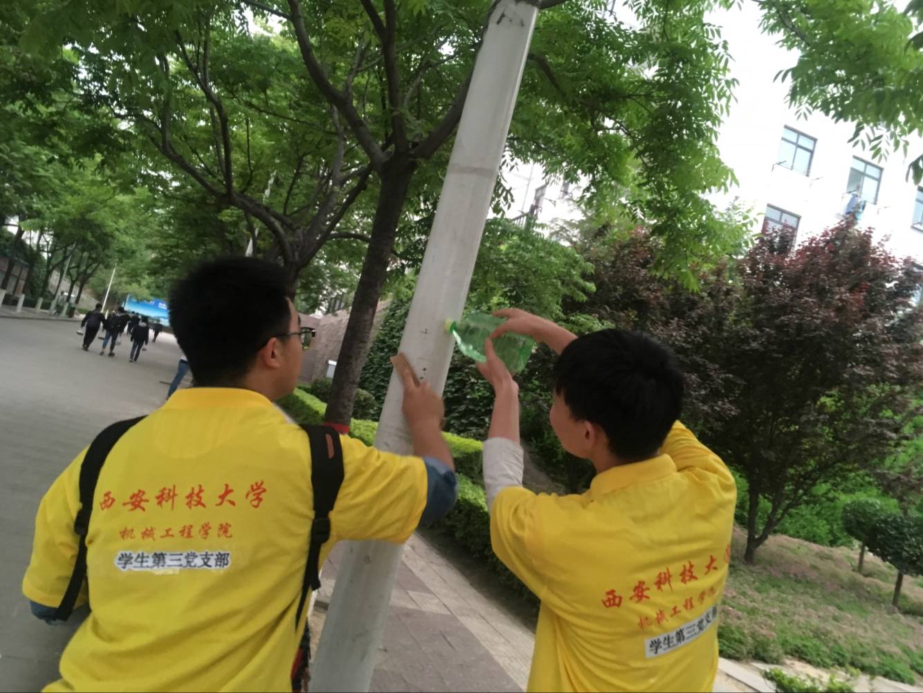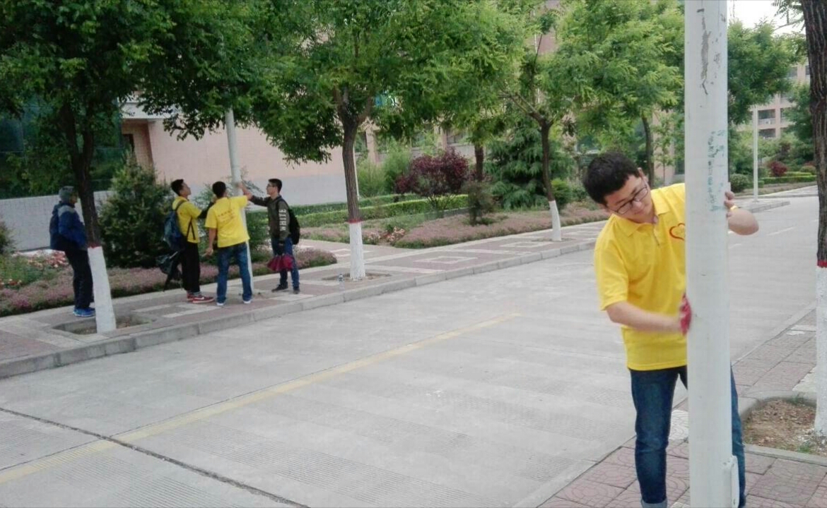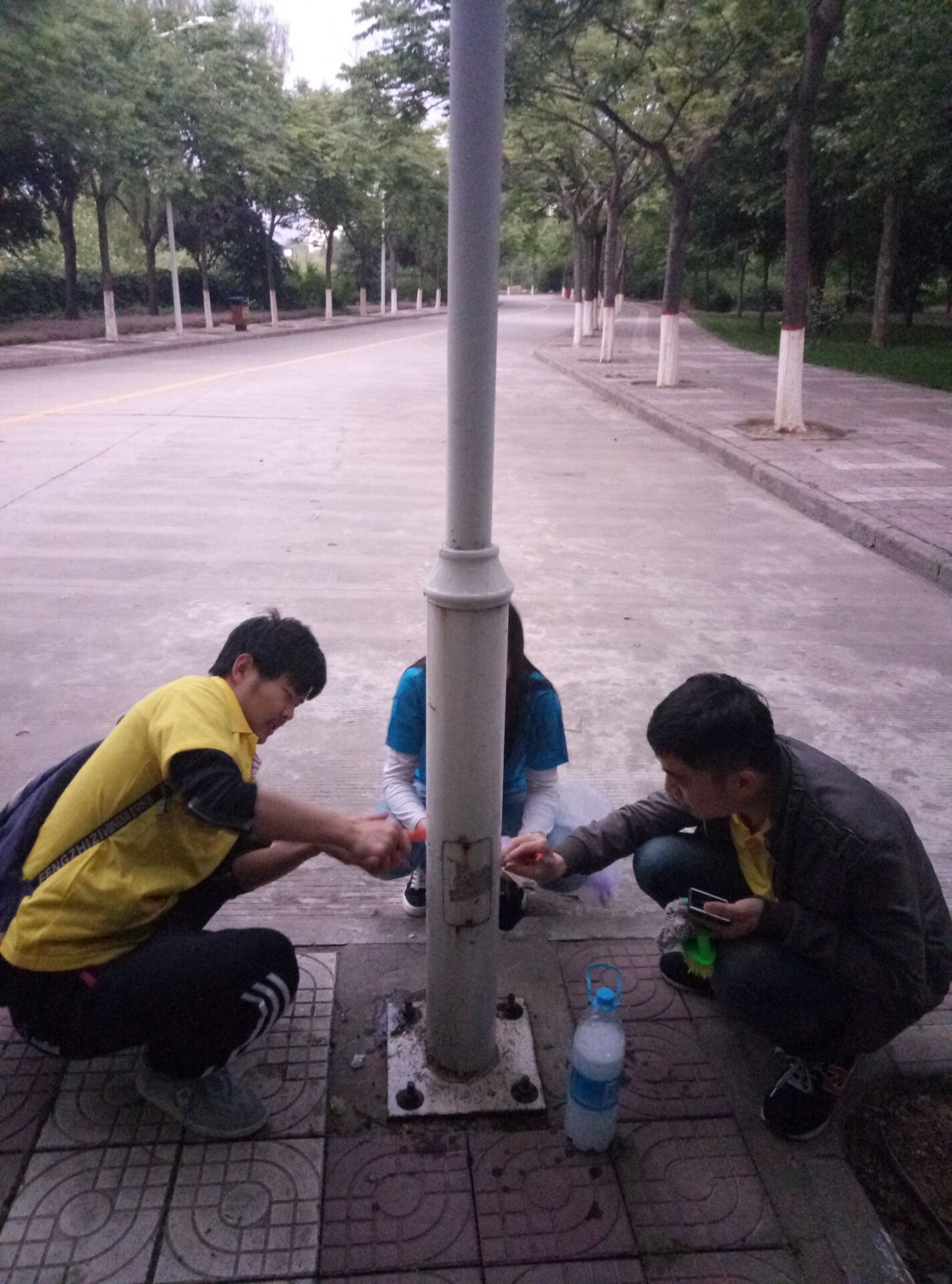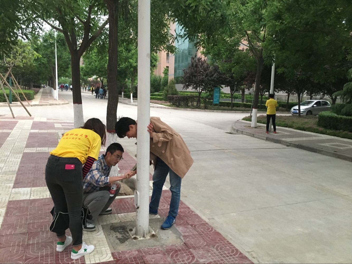 5月7日下午6点,在吕老师的安排下,大家分工明确、配合默契,各就其位,去清理公司所有路灯表面的广告贴纸和异物,虽然天下着蒙蒙细雨,但大家热情高涨、态度积极,这一切丝毫没有影响大家的工作效率。在吕老师的带领下,同学们用了两个半小时的时间,把公司打扮的清爽洁净,焕然一新,大家无不被“众人拾柴火焰高”的工作效率所折服,这也在无形间验证了团结协作在活动中的重要性,大家坚信:只要同心协力,没有克服不了的困难。
