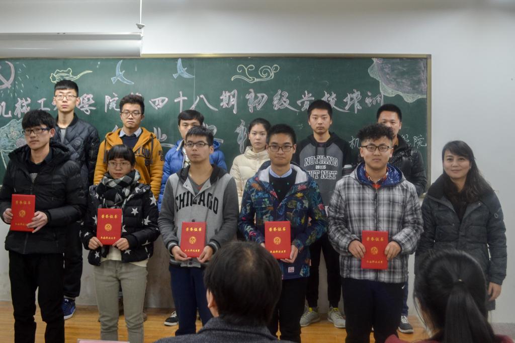 典礼由程鹏老师主持,在《国际歌》中拉开序幕,首先,程鹏老师通报了第四十八期初级党校的培训以及结业情况,经过理论授课,自学讨论,日常考核,结业考试等环节,共记五讲,十个课时,104人顺利结业,评选出5名优秀学员。然后,由辅导员老师们为本次初级党校结业学员代表颁发结业证书,党委副书记李婉丽老师为优秀学员颁发荣誉证书。最后,李婉丽老师发表了讲话,对顺利结业的同学表示了祝贺,对第四十八期党校的组织和授课老师表示了感谢,同时向全体学员提出了希望:初党只是组织发展的第一步,学员应发挥模范带头作用,深刻认识学习马克思主义,不断提高自身的党性修养,为早日加入中国共产党做好充分准备。
