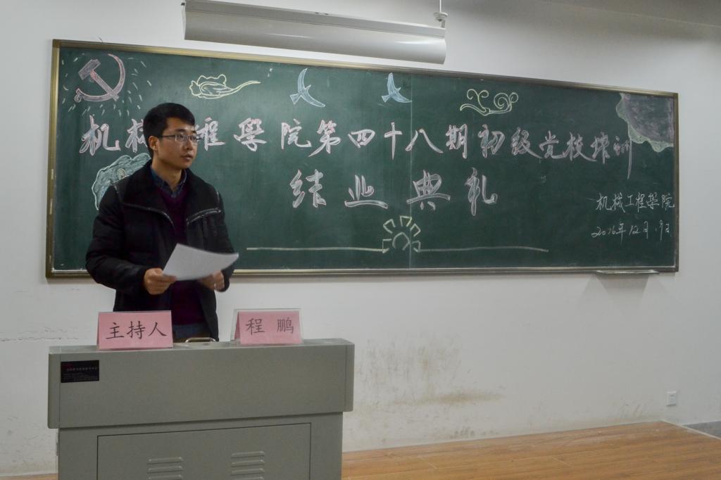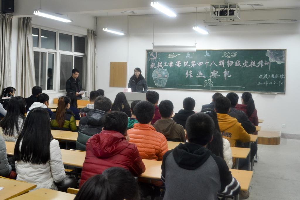 12月19日晚6点15分,机械公司第四十八期初级党校结业典礼在临潼校区10教502教室举行。机械公司党委副书记李婉丽老师和全体辅导员出席了本次典礼。机械公司第四十八期初级党校学员代表参加了结业典礼。