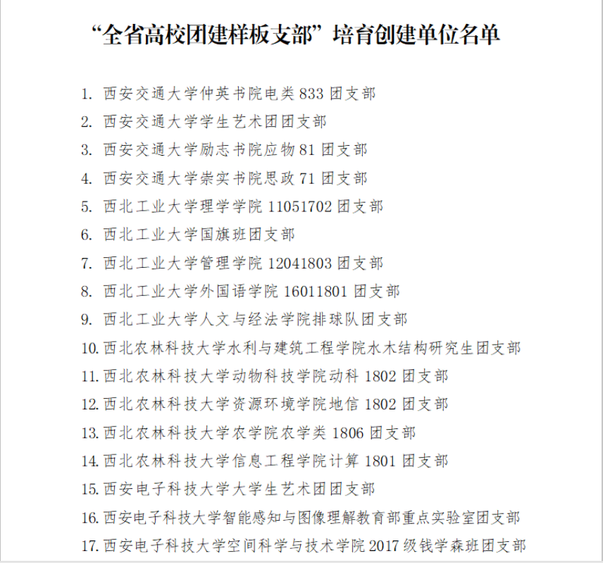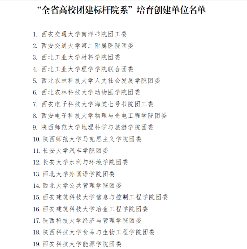 第一批全省高校团建示范院校,标杆院系,样板支部培育创建名单