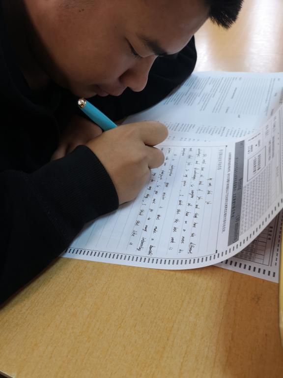 这次考试完全模拟正式考试的流程,员工在有人监考,杜绝手机的环境下,训练自己的答题能力。考试内容包括听力、阅读、写作、翻译四种题型。考试考风严正,纪律严明。考试过程中,员工们全神贯注,埋头做题,考场气氛严肃。