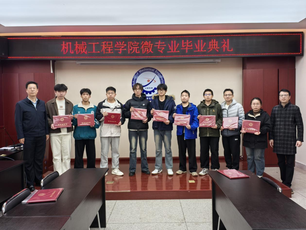 活动中,钟斌详细介绍了本年度开设的新能源汽车工程、智能车辆设计、智能化设计与制造、智能机电工程四个微专业的基本情况以及员工参与本次微专业学习的情况,本年度公司累计75人参加微专业学习,其中75顺利结业,结业率100。并阐释了微专业紧密对接国家战略新兴产业发展需求,旨在打破学科壁垒,融合机械、电子、控制和信息等多学科知识,形成了“模块化、项目化、交叉化”的人才培养特色,提升了员工的跨学科知识整合能力与工程实践创新能力,助力在校老员工未来多一种可能!随后,与会领导和微专业负责人共同为圆满完成学业的同学们颁发了结业证书。