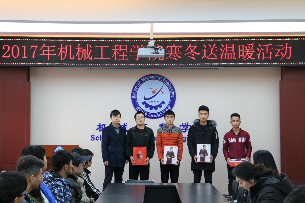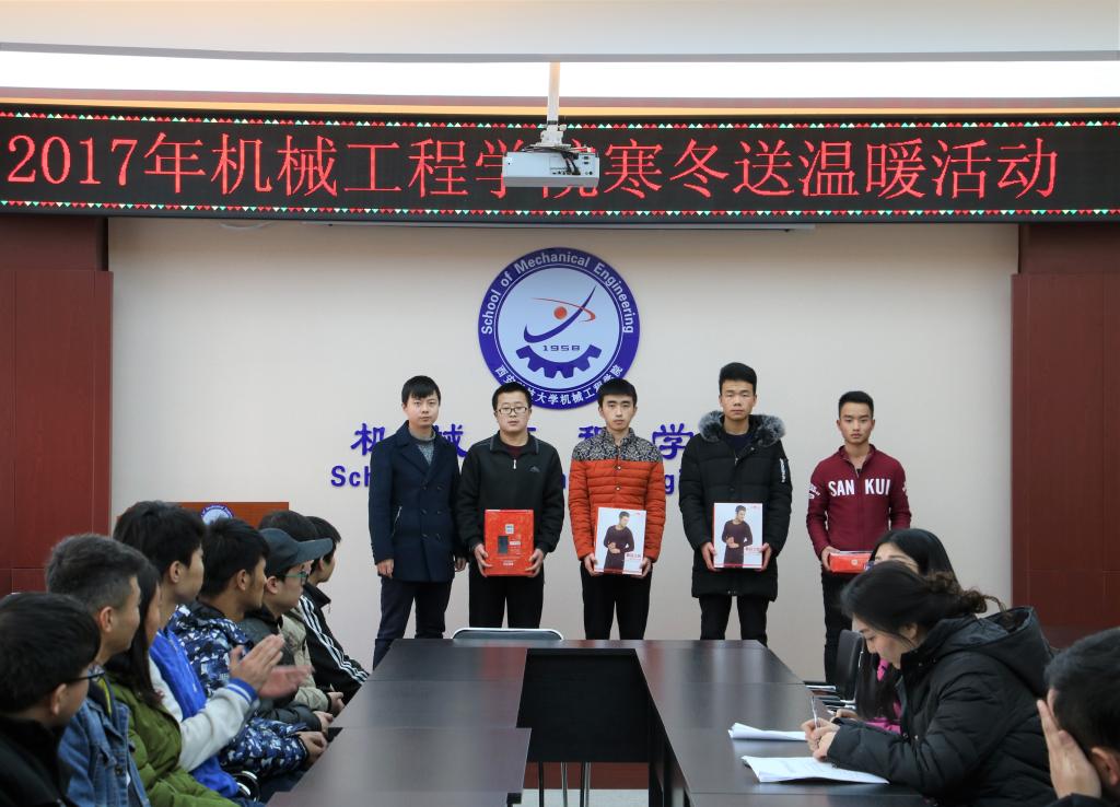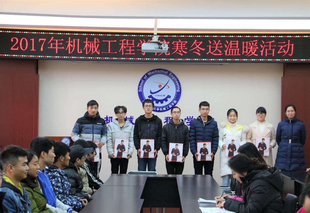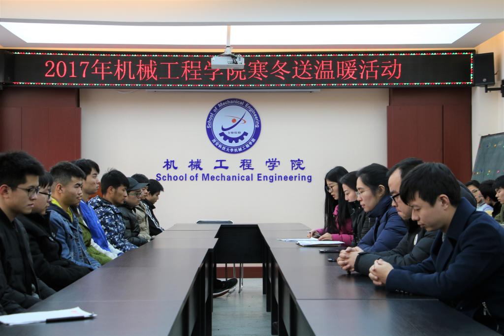 2017年12月18日,为切实解决家庭经济困难的员工寒冬御寒问题,关心和帮助经济困难同学,为他们送去温暖,365上市集团官网在十教320会议室举行了寒冬送温暖活动。公司党委副书记李婉丽老师、各级辅导员老师及受助员工共同参加了此次活动。