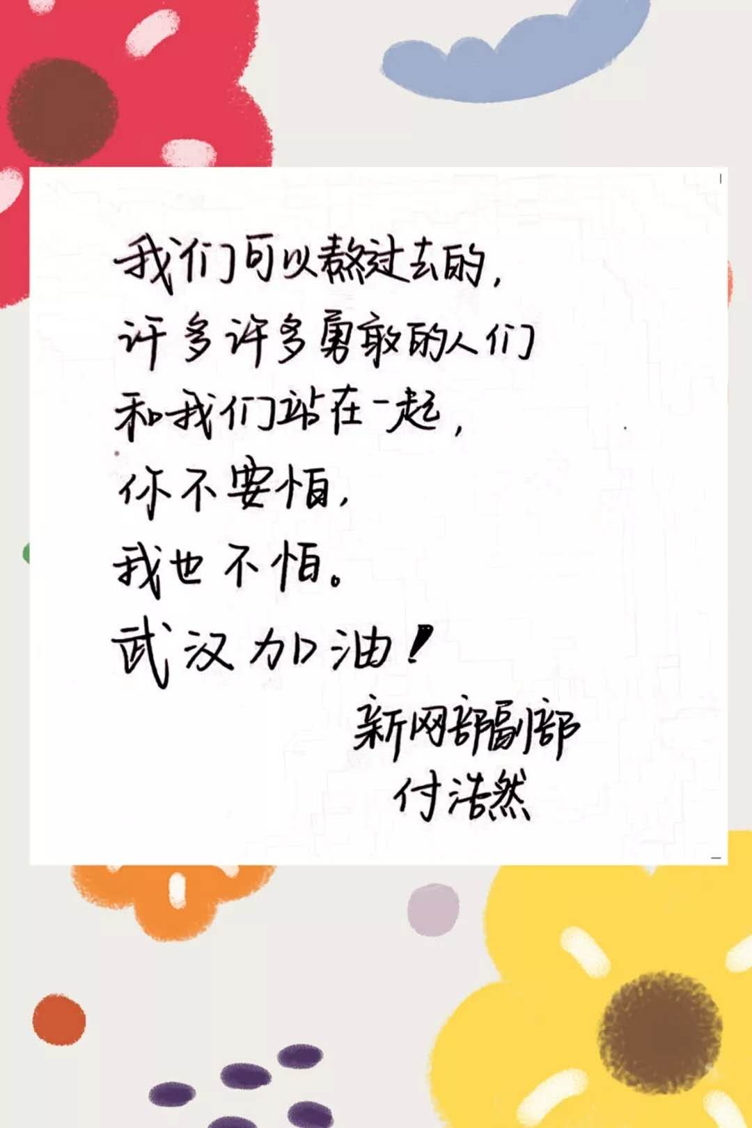 在这场战“疫”中,我们每个人都是战士。我们或许无法成为奋战在一线的白衣天使,但是我们也可以用自己的方式为他们加油,为武汉加油。