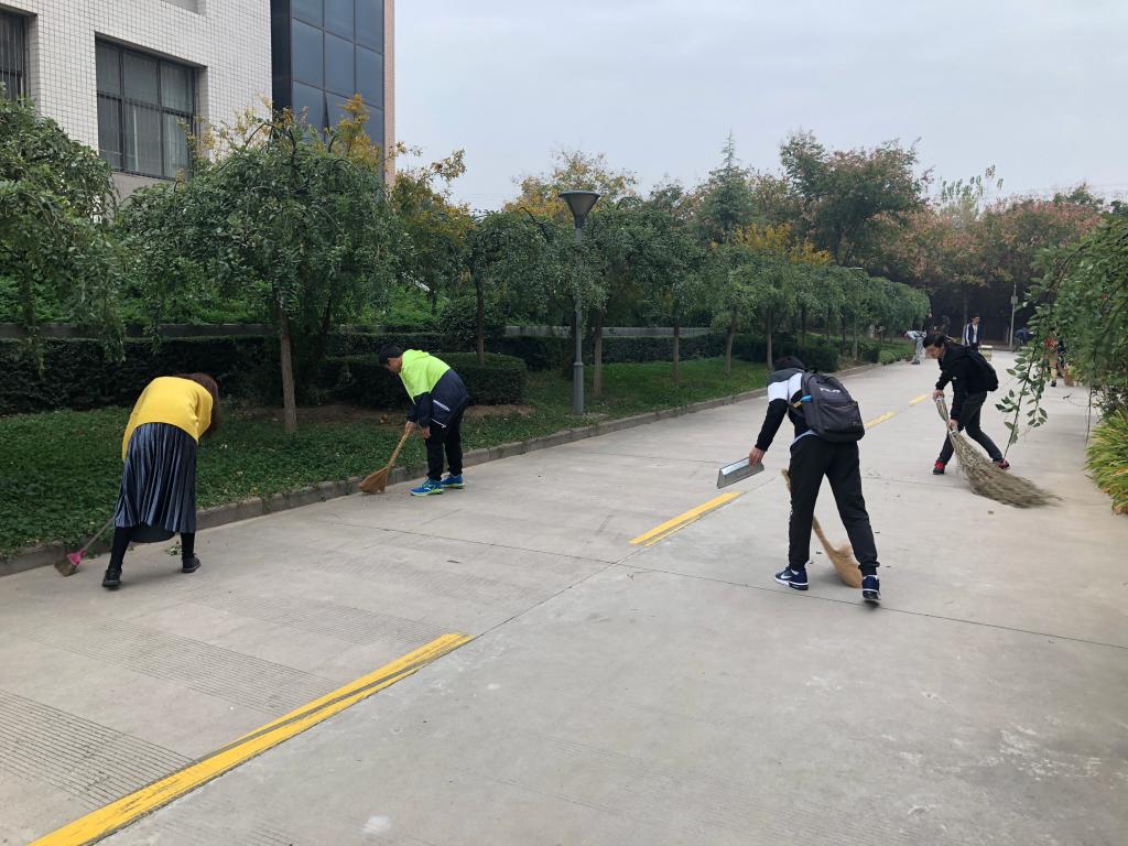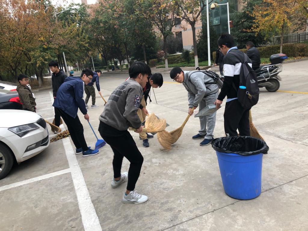 在这次活动中,党员们对机械公司楼周围的道路以及停车位进行了彻底的打扫,在这落叶满地的季节里,党员们不怕苦不怕累,为了一个清洁的校园而劳动着,最终将整个场区打扫的清爽洁净,焕然一新。