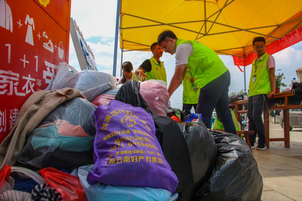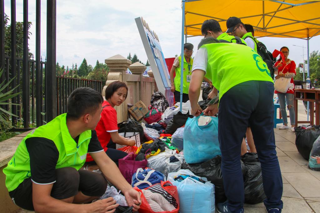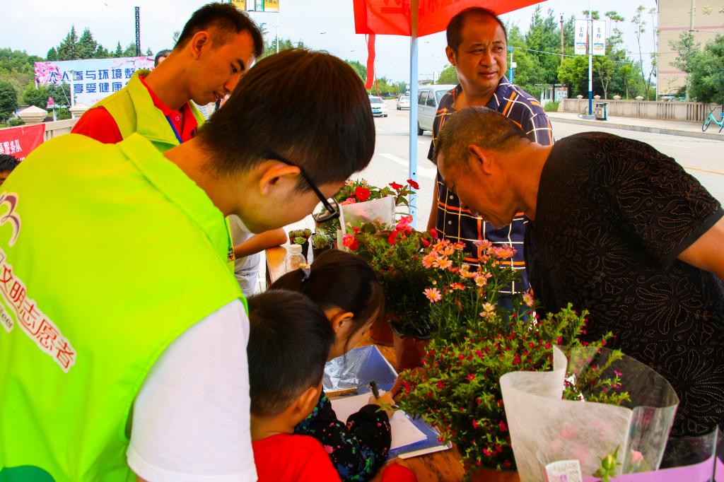 上午10时,小区居民有的抱着旧衣物,有的提着装满旧被套床单的袋子,早早就等待着捐衣服了。活动一开始,随着队员们和环保志愿者紧张有序地登记、收集旧衣物、兑换绿植,不到两个小时,52盆绿植便被兑换完了。期间,队员们还为社区小朋友们准备了画板、画笔以及废弃的饮料瓶,教他们画画的同时也宣传了环保知识,希望他们能够从小就树立起环保的意识,为国家的“绿色环保发展”贡献出自己的一份力量。