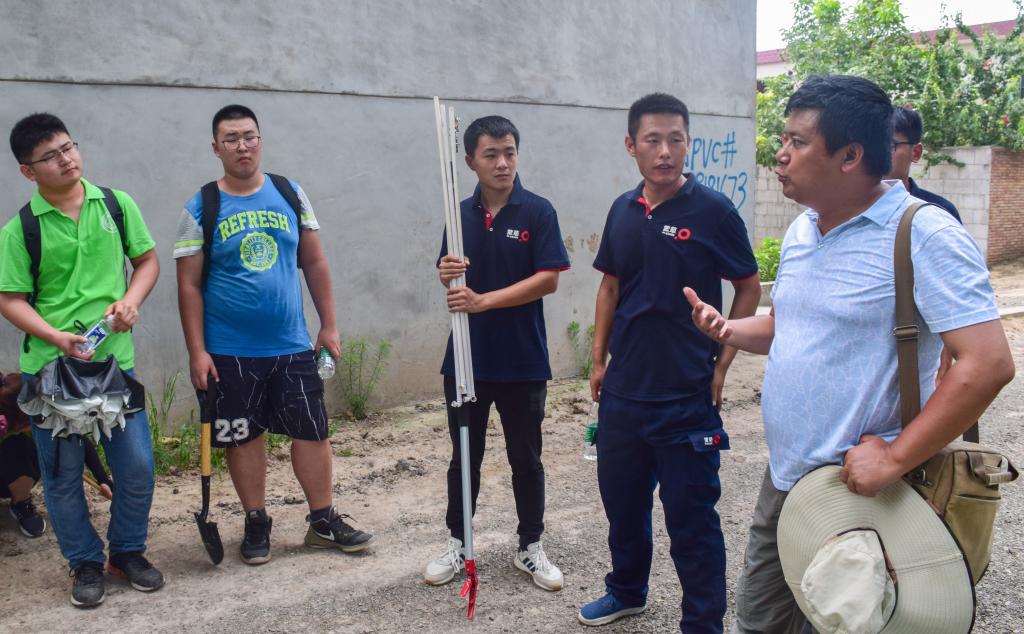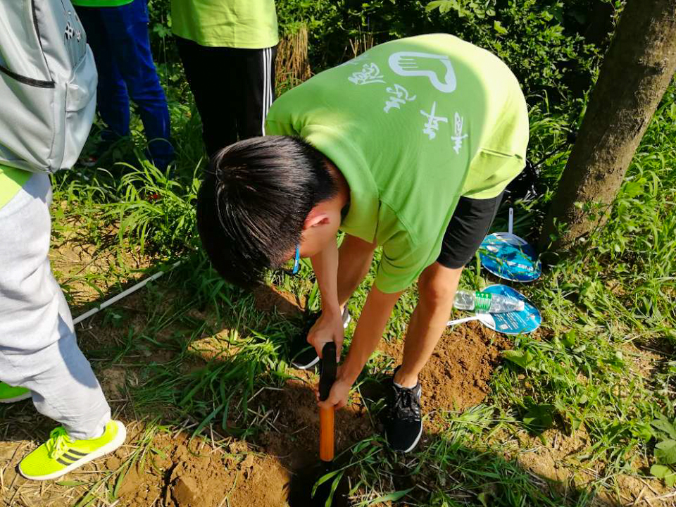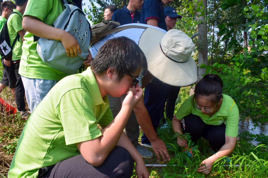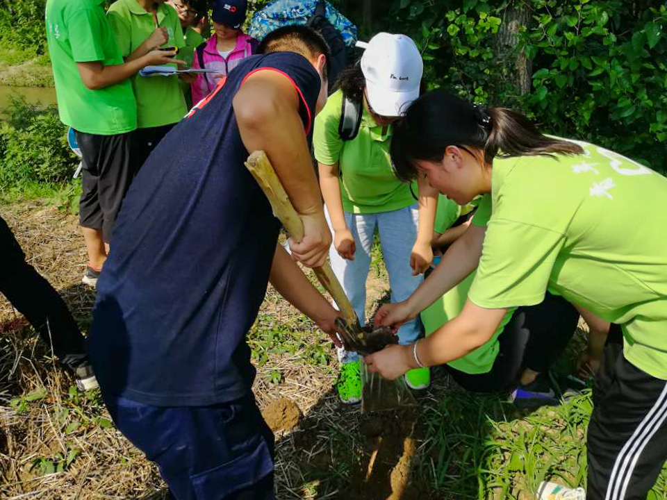 环保志愿者们按照蛇形布点法在长达两公里布满灌木丛的河岸带采集土壤。铁锹、掘根器、标本夹、吸水纸、采集带、GPS定位器、记录本、记号笔这些设备在队员手中逐渐熟练应用,一堂生动的户外操作课展开了。志愿者们从地表向下挖土30cm深,在坑壁采集没有被铁锹等金属接触的次一层土壤,装袋、标经纬度、表河道坡度……伏天的酷热没能抵挡住他们未环保贡献自己力量的初心。