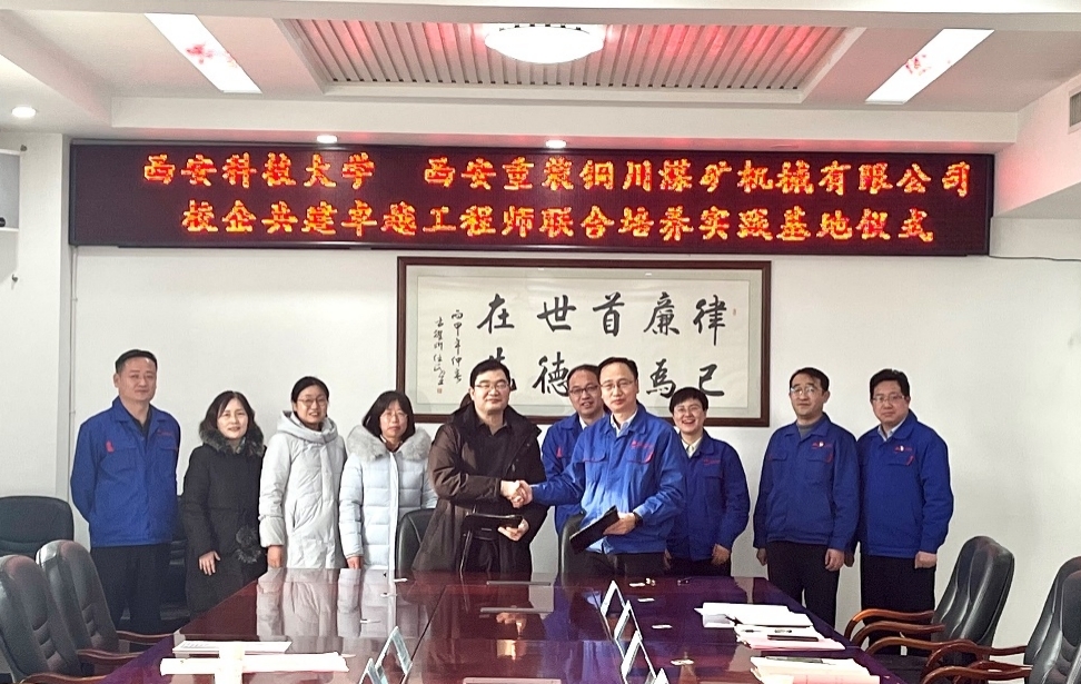 为深入学习贯彻习近平新时代中国特色社会主义思想和党的二十大精神,落实立德树人根本任务,进一步推进“卓越工程师教育培养计划2.0”有效实施,12月29日下午,365英国上市公司官网-西安重装铜川煤矿机械有限公司校企共建“机械设计制造及其自动化卓越工程师联合培养实践基地”揭牌仪式在铜川煤矿机械有限公司举行。铜川煤矿机械有限公司宋晓军董事长、张小利总经理、陈克华副总经理、各主管部门负责人以及365上市集团官网经理曹现刚、副书记尹弘、教务办主任刘华旭、机械设计系主任陈艳、机械设计系副主任高扬参加活动。铜川煤矿机械有限公司陈克华副总经理主持会议。