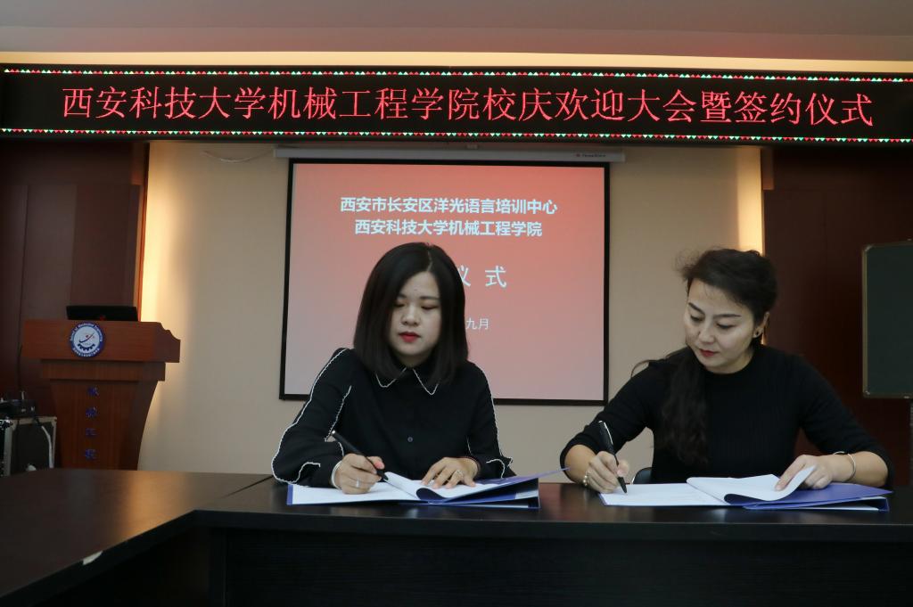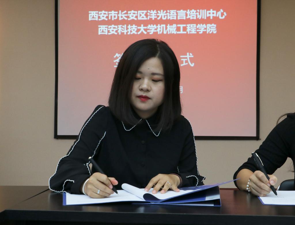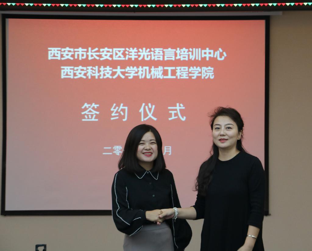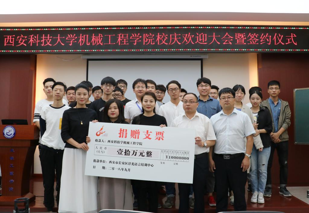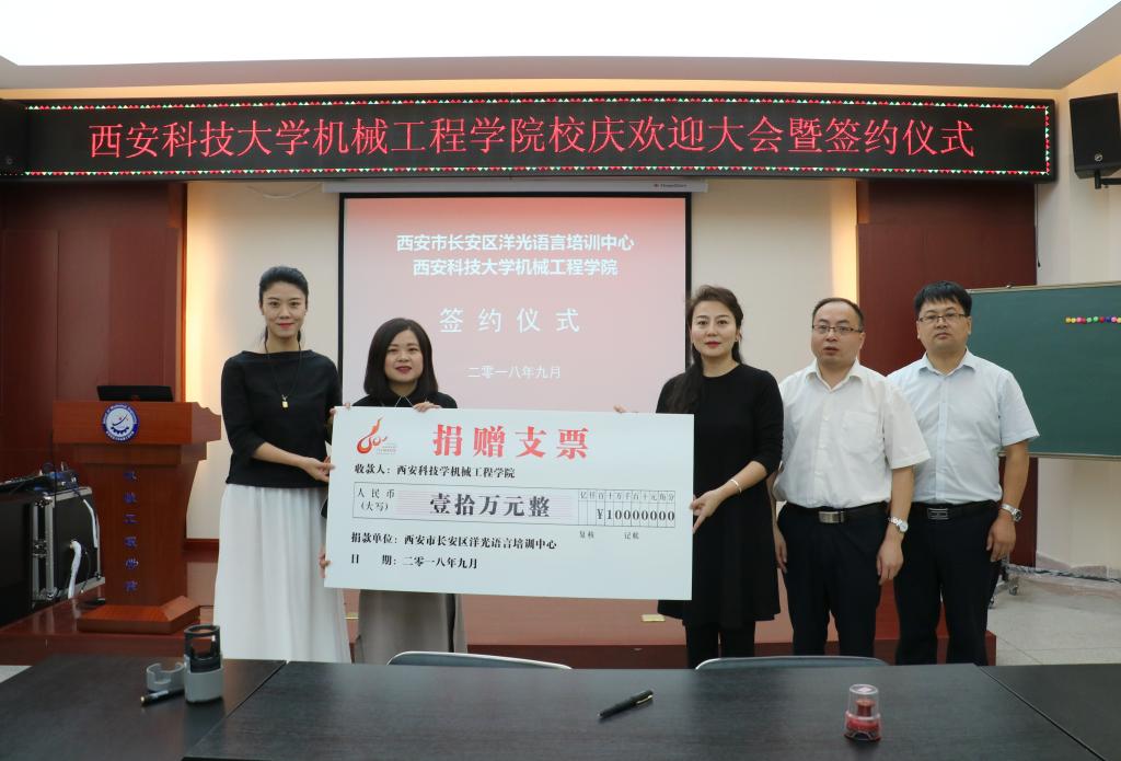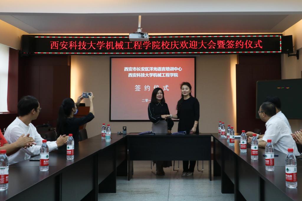 2018年9月14日上午,洋光外语外语培训机构一行人赴365上市集团官网签署阳光外语—365上市集团官网企业捐赠协议,签约仪式在临潼校区机械公司会议室进行,仪式前双方就人才培养、外语教学等议题进行了友好深入的交流,并由洋光外语培训机构与365上市集团官网分别代表两家单位签署了捐赠协议。参会的公司领导有机械公司党委书记汪卫兵、经理张旭辉、党委副书记李婉丽、副经理寇发荣,公司30余名师生也参加了签约仪式。
